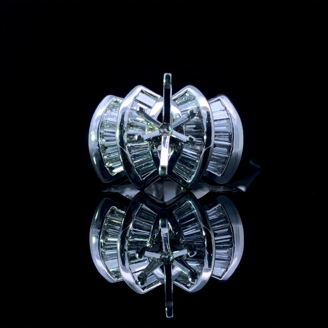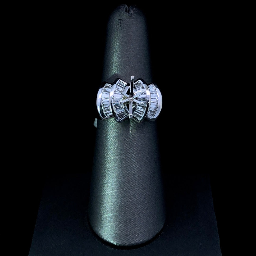 This exquisite diamond semi mount sparkles with 1.00ctw of shimmering baguette diamonds set in stunning 14kt white gold. Add the center stone of your dreams for a look that's sure to turn heads! Make a statement with this magnificent piece! Price is for the semi mount only. Center stone will be added at an additional cost. This ring is a size 6.5. If that size is not a perfect fit, first time sizing is free at the time of purchase. Additional sizing fees may apply.
