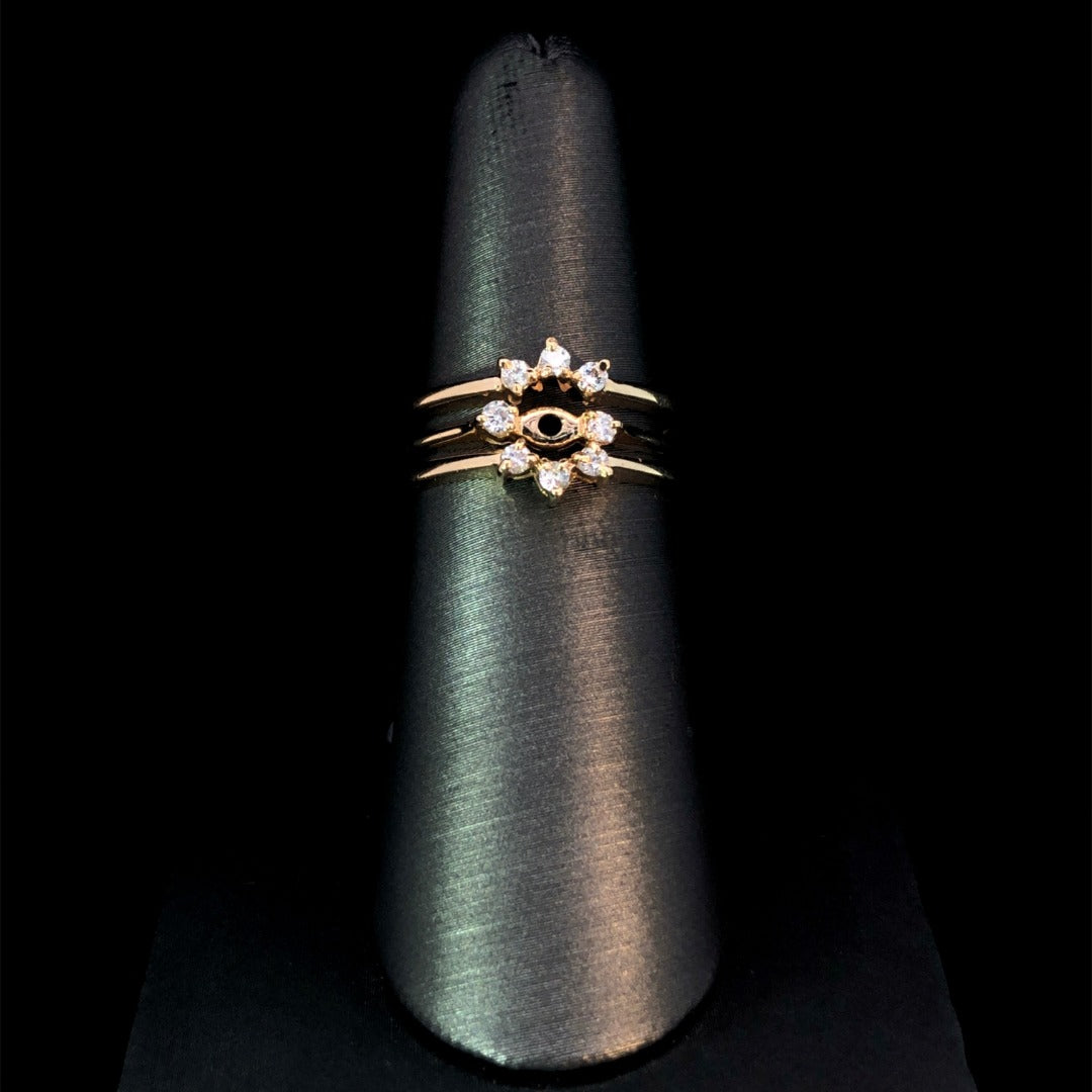 Add a touch of elegance with our 14kt yellow gold classic semi, featuring .25ctw of sparkling round diamonds. Complete the timeless look by selecting your center stone from our wide variety of options. Make a statement with this stunning piece! Price is for the semi mount only. Center stone and guard will be added at an additional cost. This is a size 7. If that size is not a perfect fit, first time sizing is free at the time of purchase. Additional sizing fees may apply.