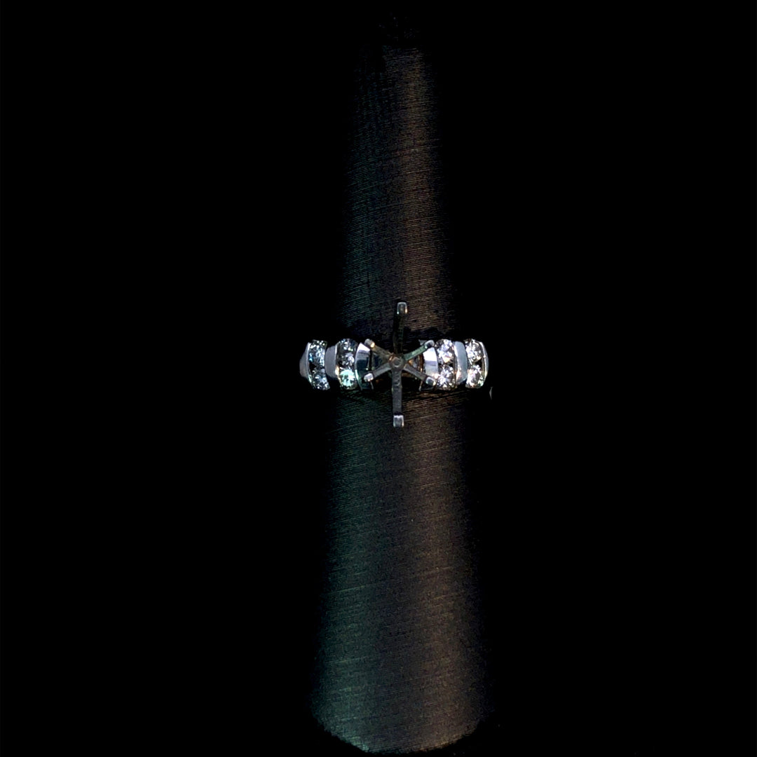 This elegant semi mount showcases .40 ctw of sparkling round diamonds beautifully set in luxurious platinum. The thoughtful design leaves room for your personal touch—select your own center stone from our curated collection of loose diamonds to create a truly one-of-a-kind engagement ring or special occasion piece that reflects your unique style and vision. Price is for the semi mount only. Center stone will be added at an additional cost. This ring is a size 7. If that size is not a perfect fit, first time sizing is free at the time of purchase. Additional sizing fees may apply.