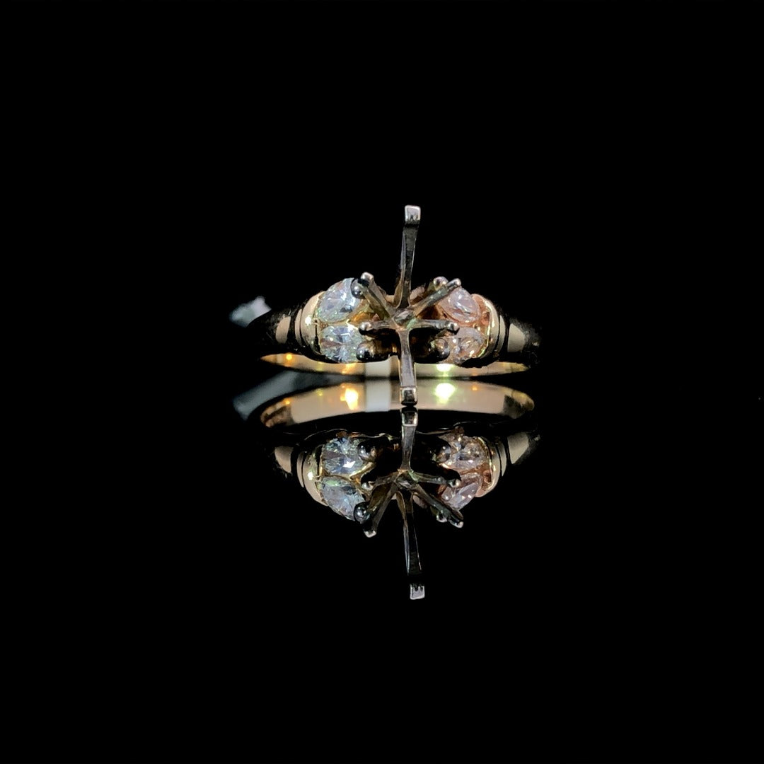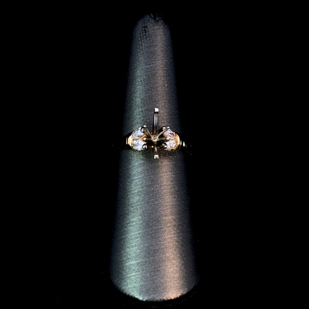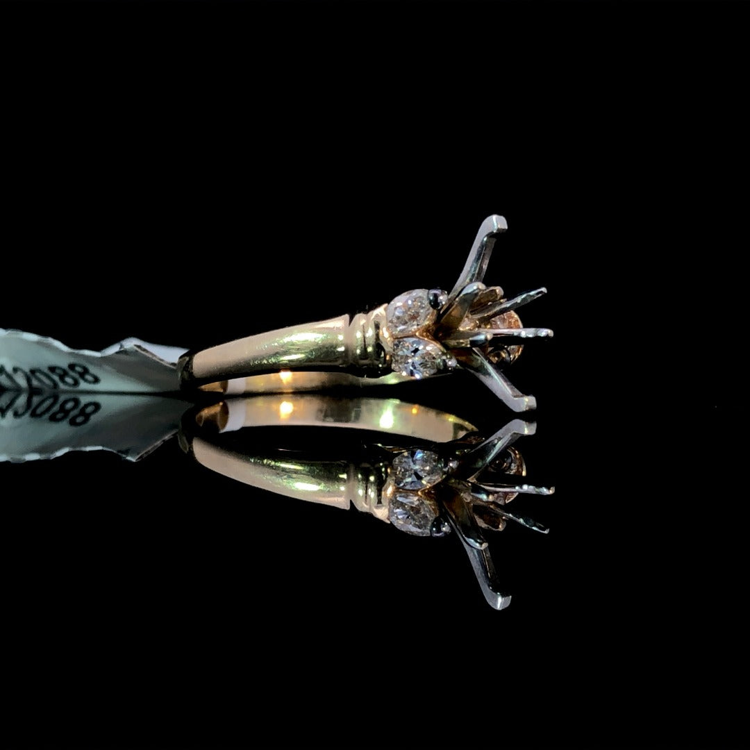 Indulge in luxury with our stunning diamond semi mount. Featuring 2 marquise diamonds on either side of the head, totaling .50ctw, set in 14kt yellow gold, this piece exudes sophistication. Choose the perfect center stone from our collection to complete your unique and elegant look. Price is for the semi mount only. Center stone will be added at an additional cost. This ring is a size 7. If that size is not a perfect fit, firs time sizing is free at the time of purchase. Additional sizing fees may apply.