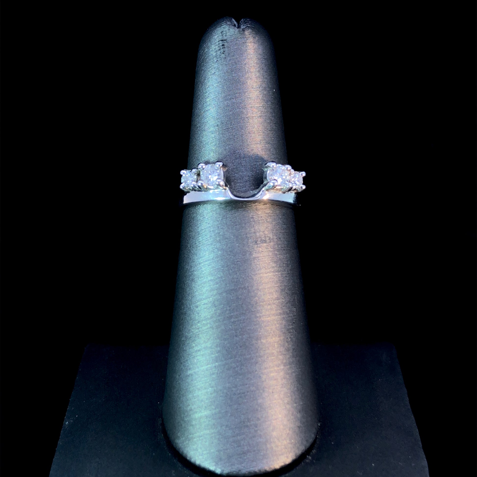 Complete your look with this dazzling 14kt white gold ring enhancer. Elegantly crafted, this piece sparkles with the allure of two round diamonds on each side, totaling .40ctw. Put on the finishing touch of glamour and shine with this exquisite piece! This ring is a size 7. If that size is not a perfect fit, first time sizing is free at the time of purchase. Additional sizing fees may apply.