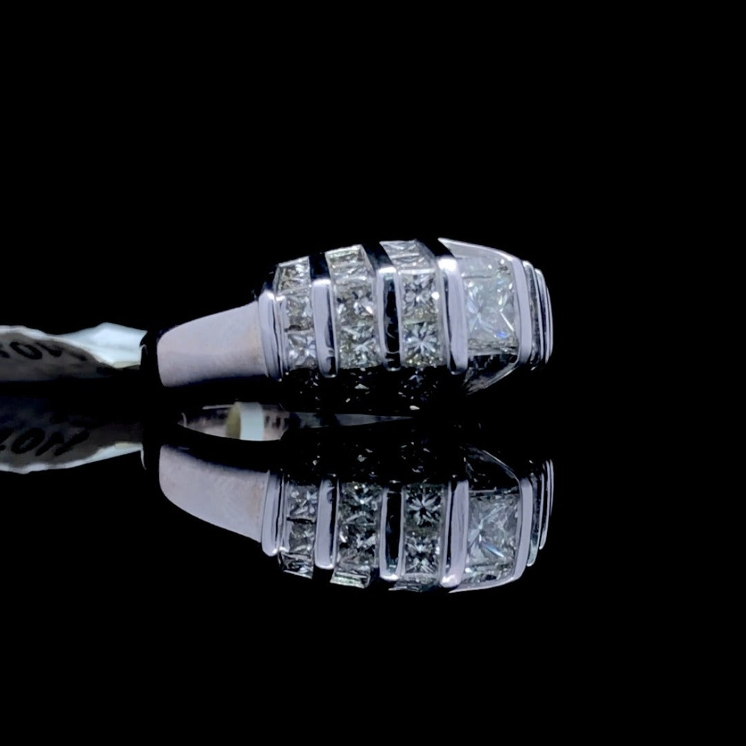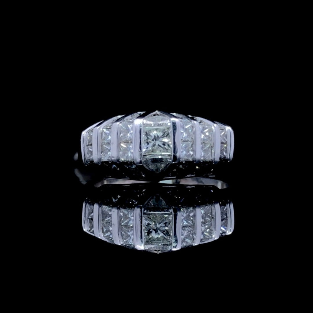 Adorn your finger with the timeless elegance of this 14Kt white gold ring, set with 2.20ctw of luminous diamonds. Captivating and luxurious, this is a piece of fine jewelry that will add a sparkle of sophistication to any outfit. This ring is a size 6. If that size is not a perfect fit, first time sizing is free at the time of purchase.