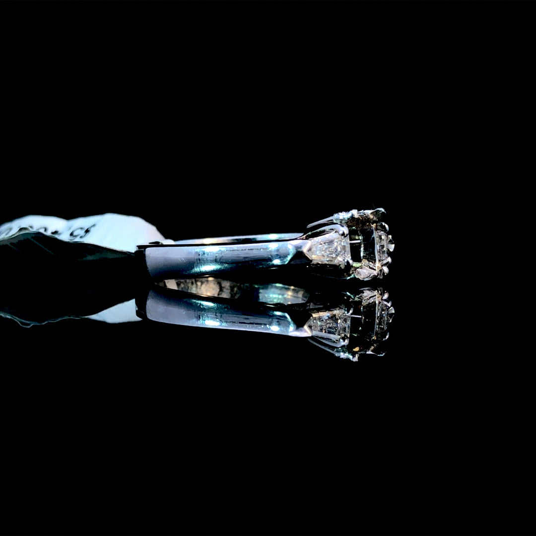 This elegant platinum semi mount showcases timeless sophistication with understated charm. Two baguette-cut side diamonds, totaling 0.33 ctw, frame your selected center stone beautifully. Choose from our curated collection of loose stones to create a one-of-a-kind piece that reflects your personal style and celebrates what matters most to you. Price is for the semi mount only. Center stone will be added at an additional cost. This ring is a size 6.5. If that size is not a perfect fit, first time sizing is free at the time of purchase. Additional sizing fees may apply.