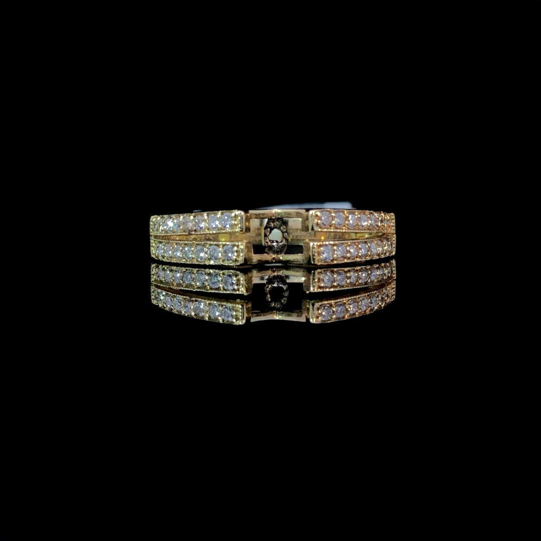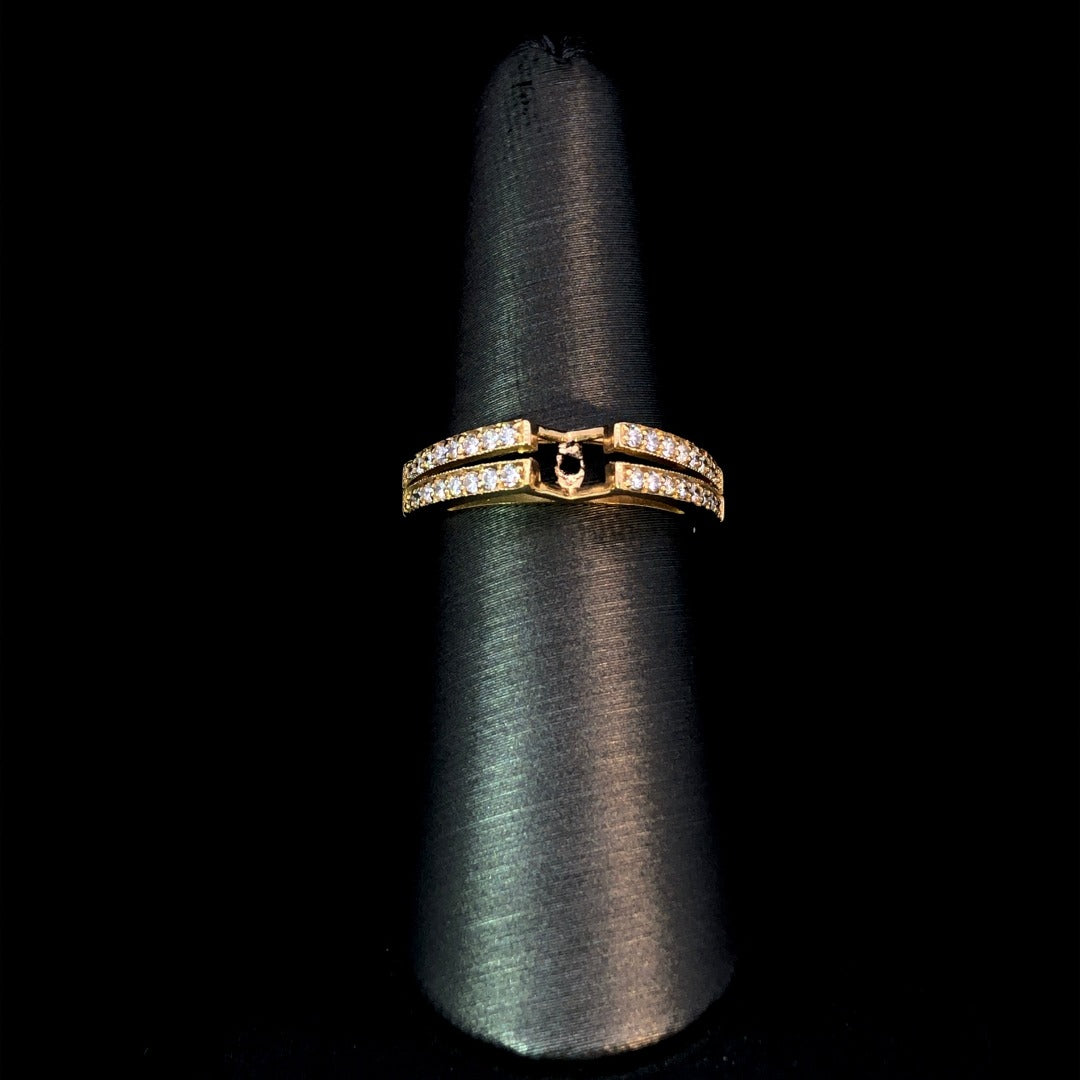 Elevate your style with this exquisite 14kt yellow gold diamond semi mount. Two rows of shimmering round diamonds totaling .32ctw are separated by a sleek line of gold, creating a sophisticated and luxurious look. Customize it with your choice of center stone from our collection to make it truly yours. Price is for the semi mount only. Center stone will be added at an additional cost. This ring is a size 7. If that size is not a perfect fit, first time sizing is free at the time of purchase. Additional sizing fees may apply.