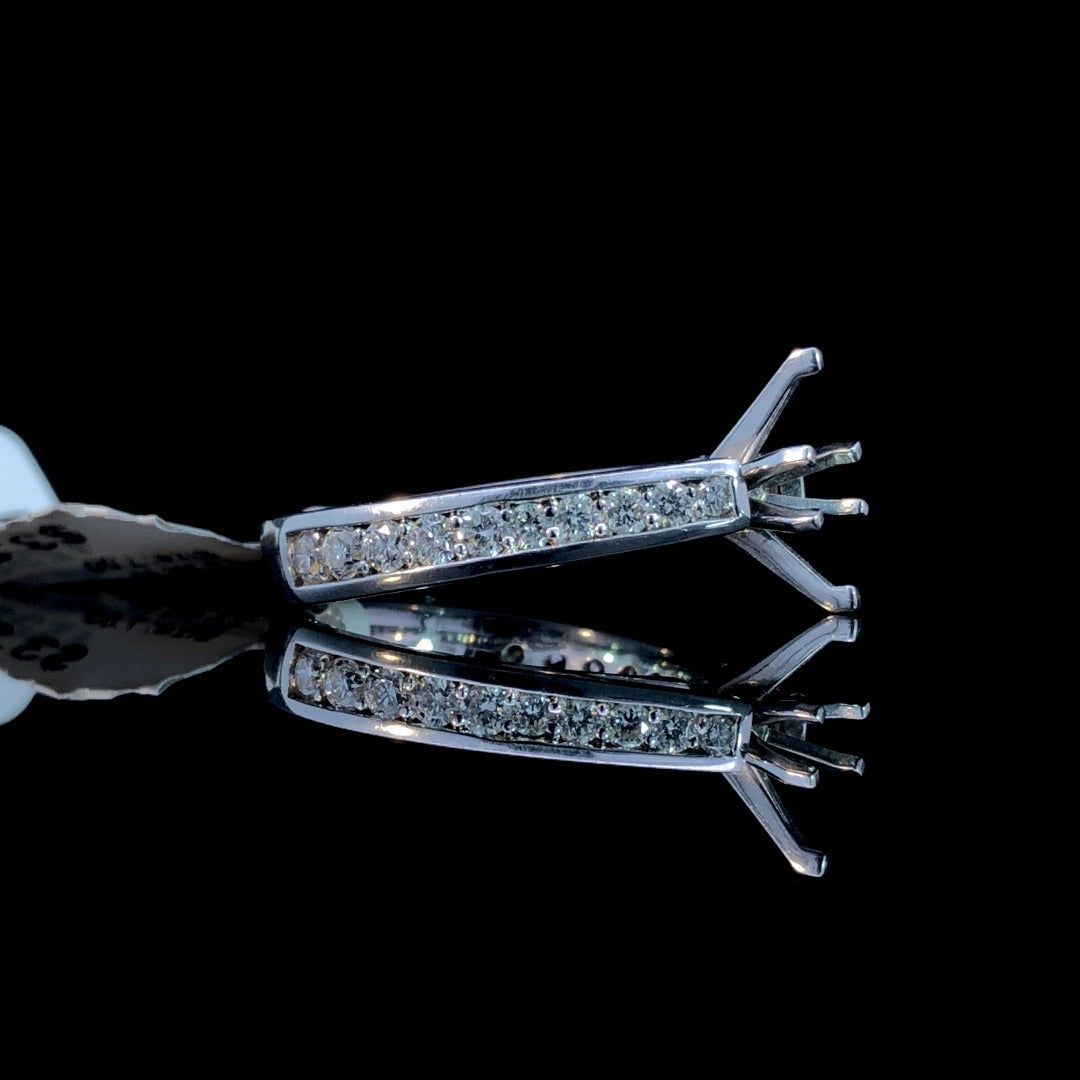 Introducing our classic diamond semi mount, crafted from 14kt white gold with a cathedral style band. Adorned with .85ctw of stunning round diamonds, this piece exudes elegance. Personalize it with your choice of center stone from our unmatched selection to create a truly unique and beautiful accessory. Price is for the semi mount only. Center stone will be added at an additional cost. This ring is a size 7. If that size is not a perfect fit, first time sizing is free at the time of purchase. Additional sizing fees may apply.
