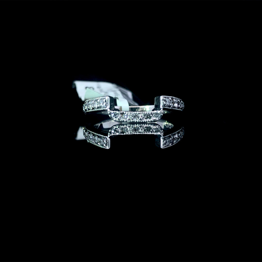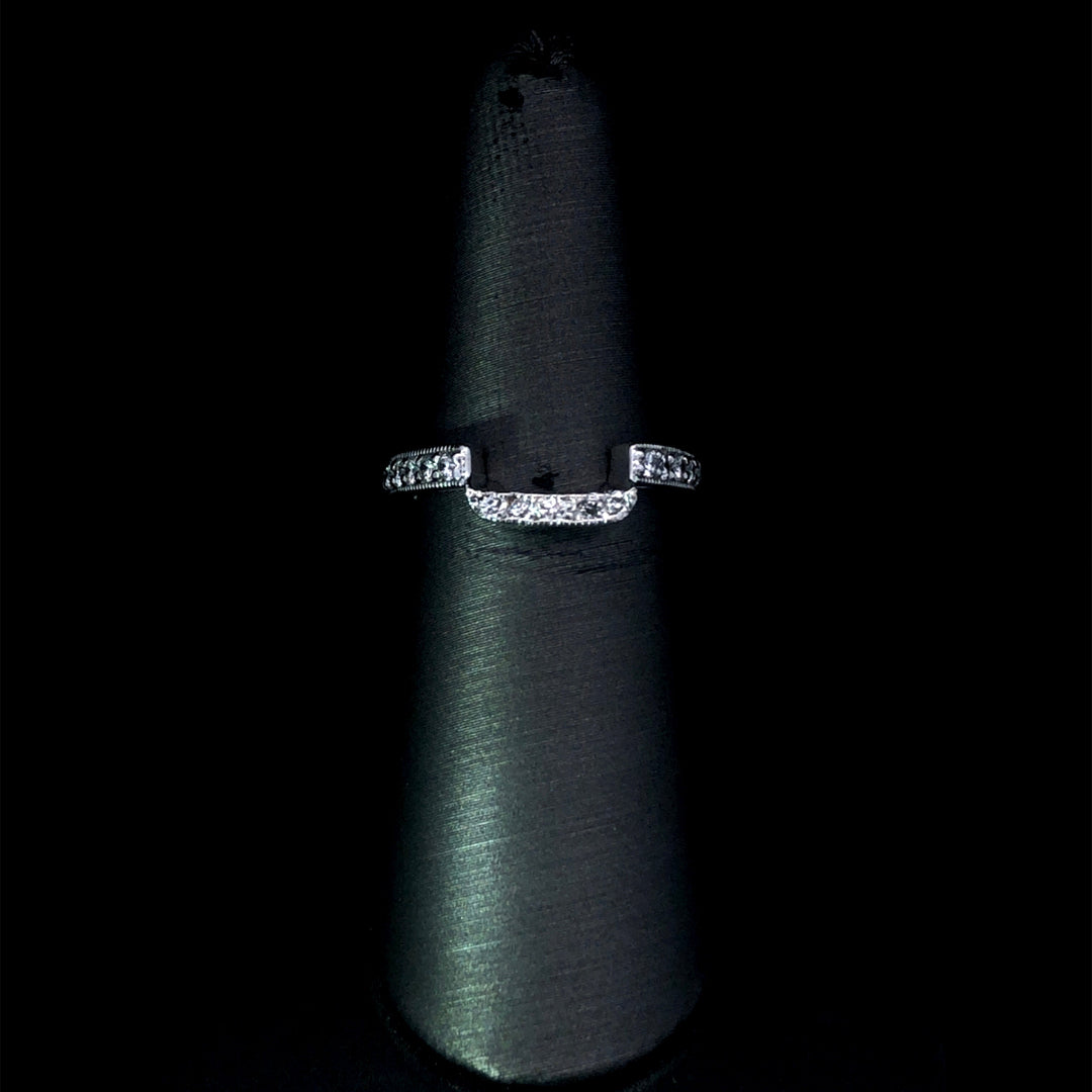 Complete your dream ring with this exquisite 14kt white gold diamond contour band. Featuring .40ctw of round diamonds and delicate milgrain detailing, it's designed to fit perfectly with select engagement ring styles. Enhance your ring's sparkle and style with this beautiful addition. This ring is a size 7. If that size is not a perfect fit, first time sizing is free at the time of purchase. Additional sizing fees may apply.