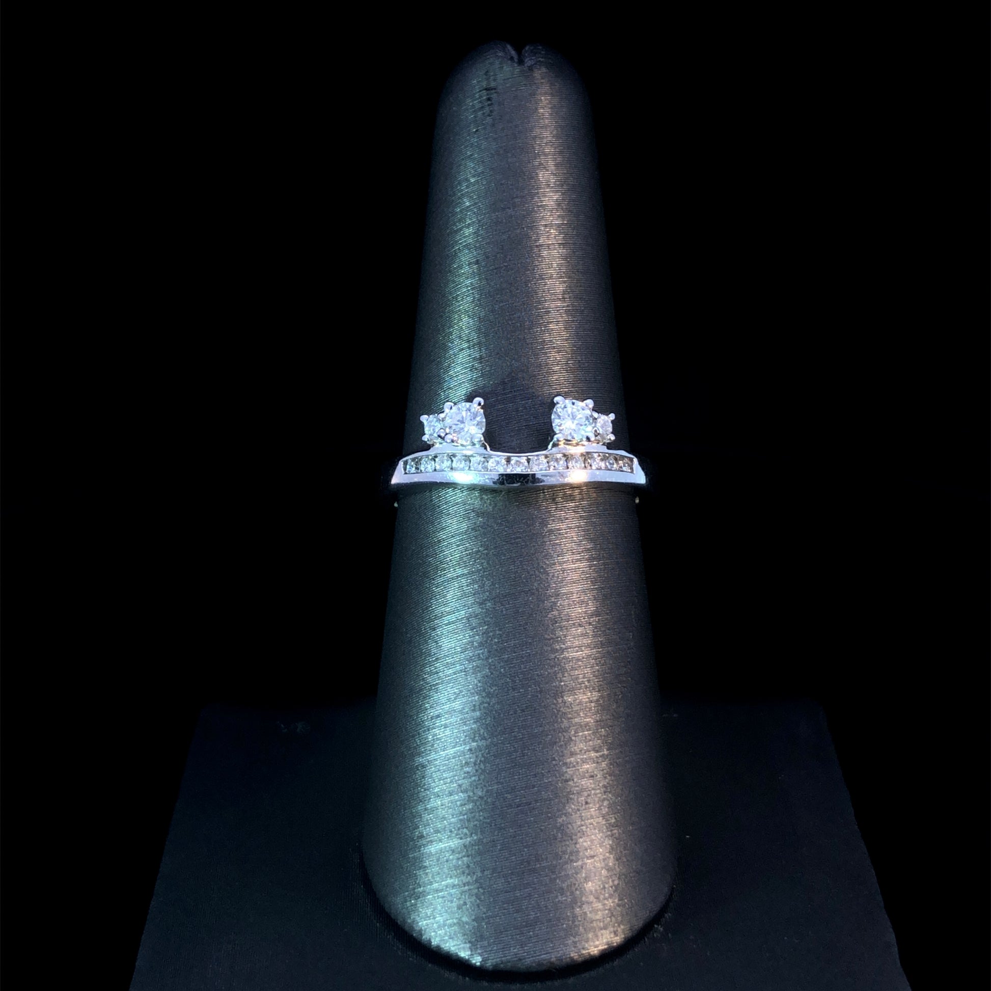 This 14kt white gold ring guard is a timeless classic, boasting .34ctw of gleaming round diamonds. Add a luxurious touch to your look or surprise a special someone with this beautiful ring! This ring is a size 7. If that size is not a perfect fit, first time sizing is free at the time of purchase. Additional sizing fees may apply.
