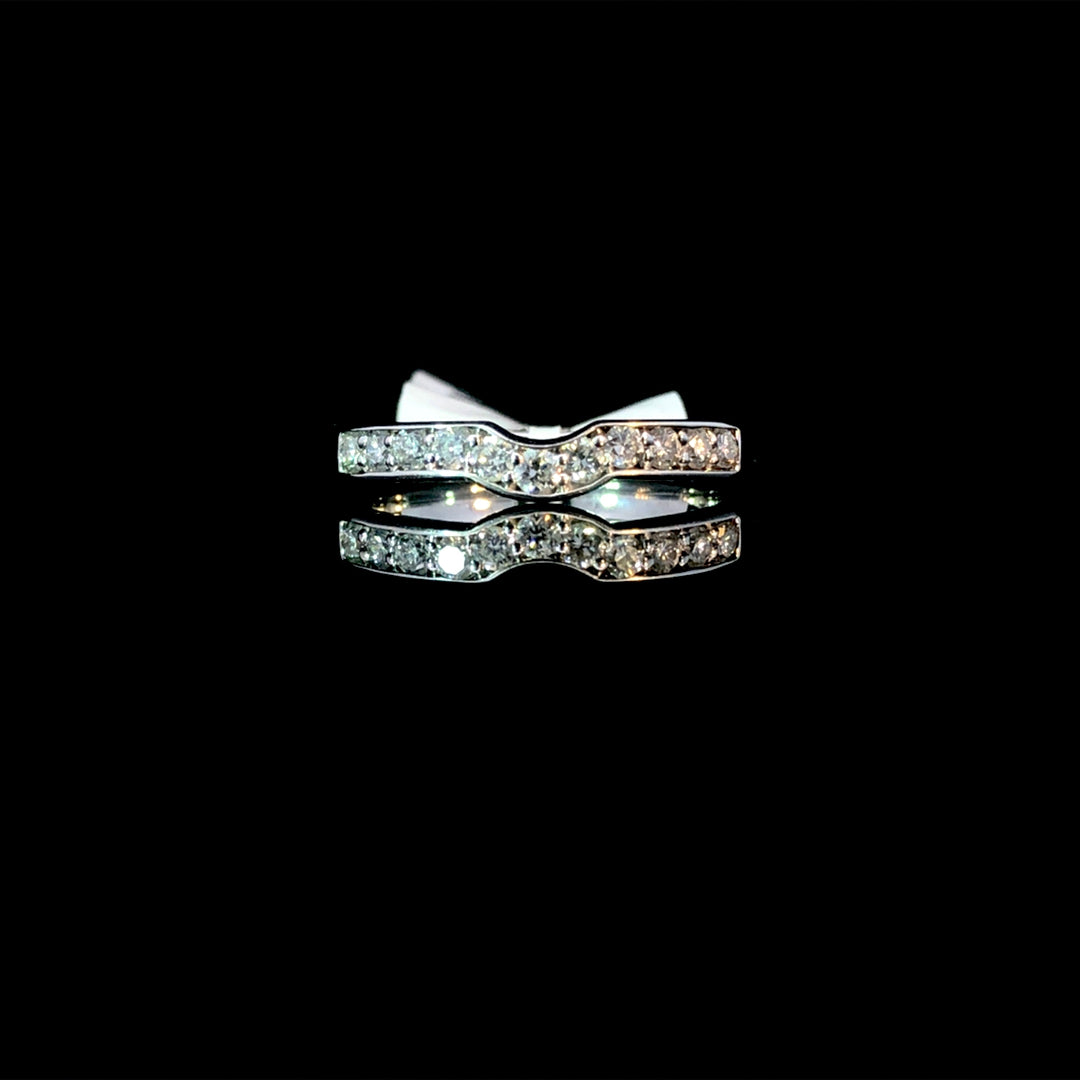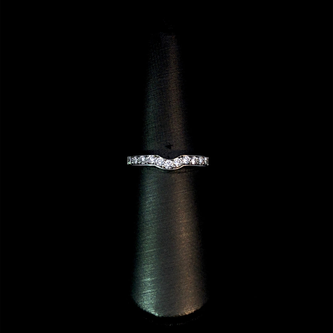 Add a touch of elegance to your look with this 14kt white gold curved diamond band. Featuring a total of .33ctw of sparkling round diamonds, this band is the perfect addition to any jewelry collection. Shine bright with this timeless and sophisticated piece. This ring is a size 7. If that size is not a perfect fit, first time sizing is free at the time of purchase. Additional sizing fees may apply.