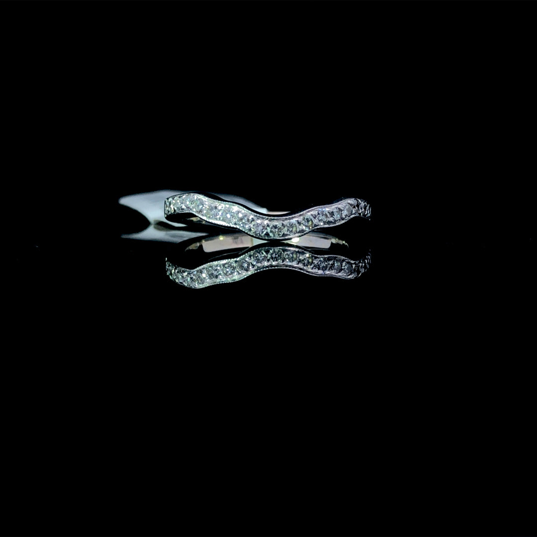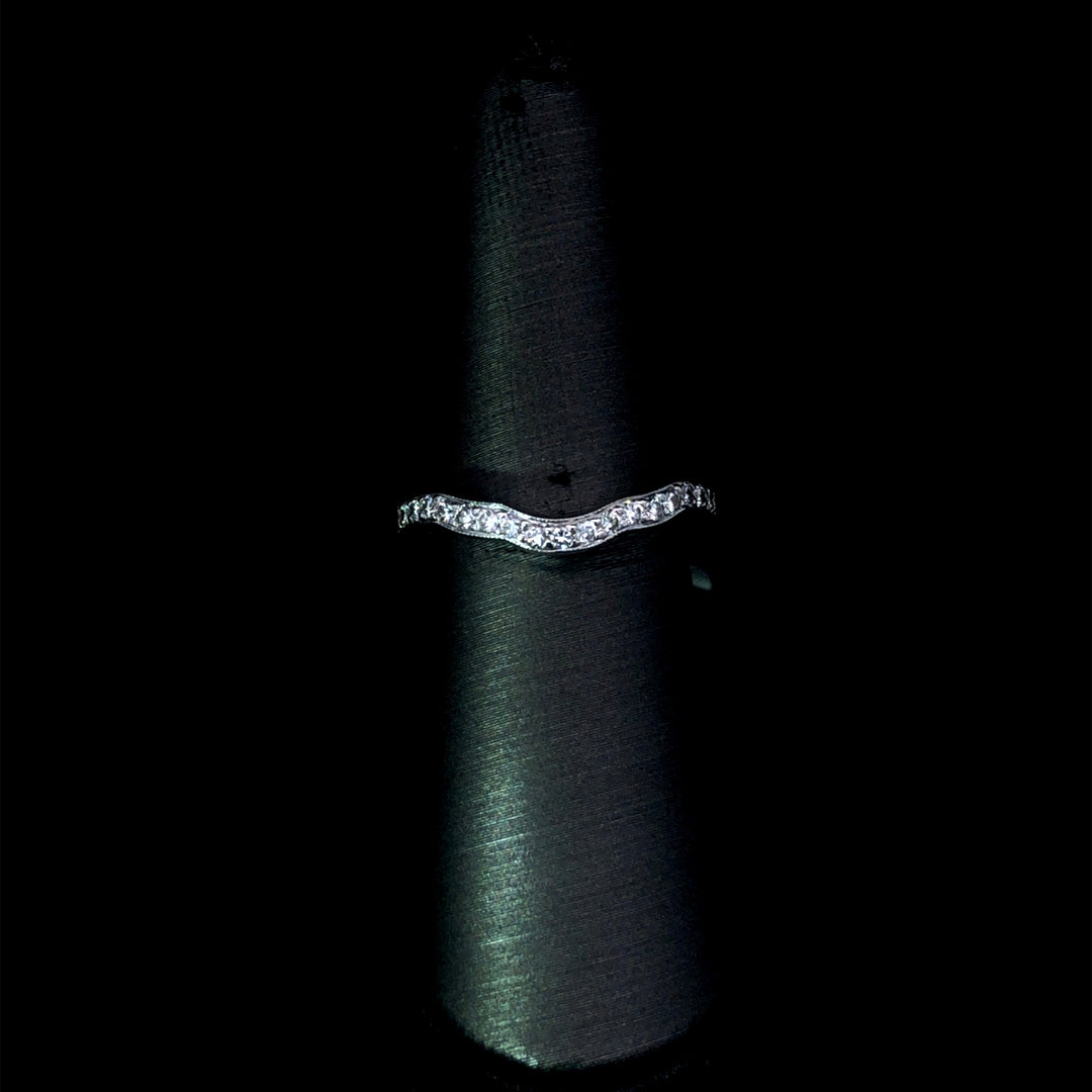 Complete your bridal set with this diamond contour band. Its 14kt white gold contour design ensures a flush fit with no gapping with certain engagement ring styles. The .24ctw of diamonds adds a touch of elegance and sparkle. This ring is a size 6.75. If that size is not a perfect fit, first time sizing is free at the time of purchase. Additional sizing fees may apply.