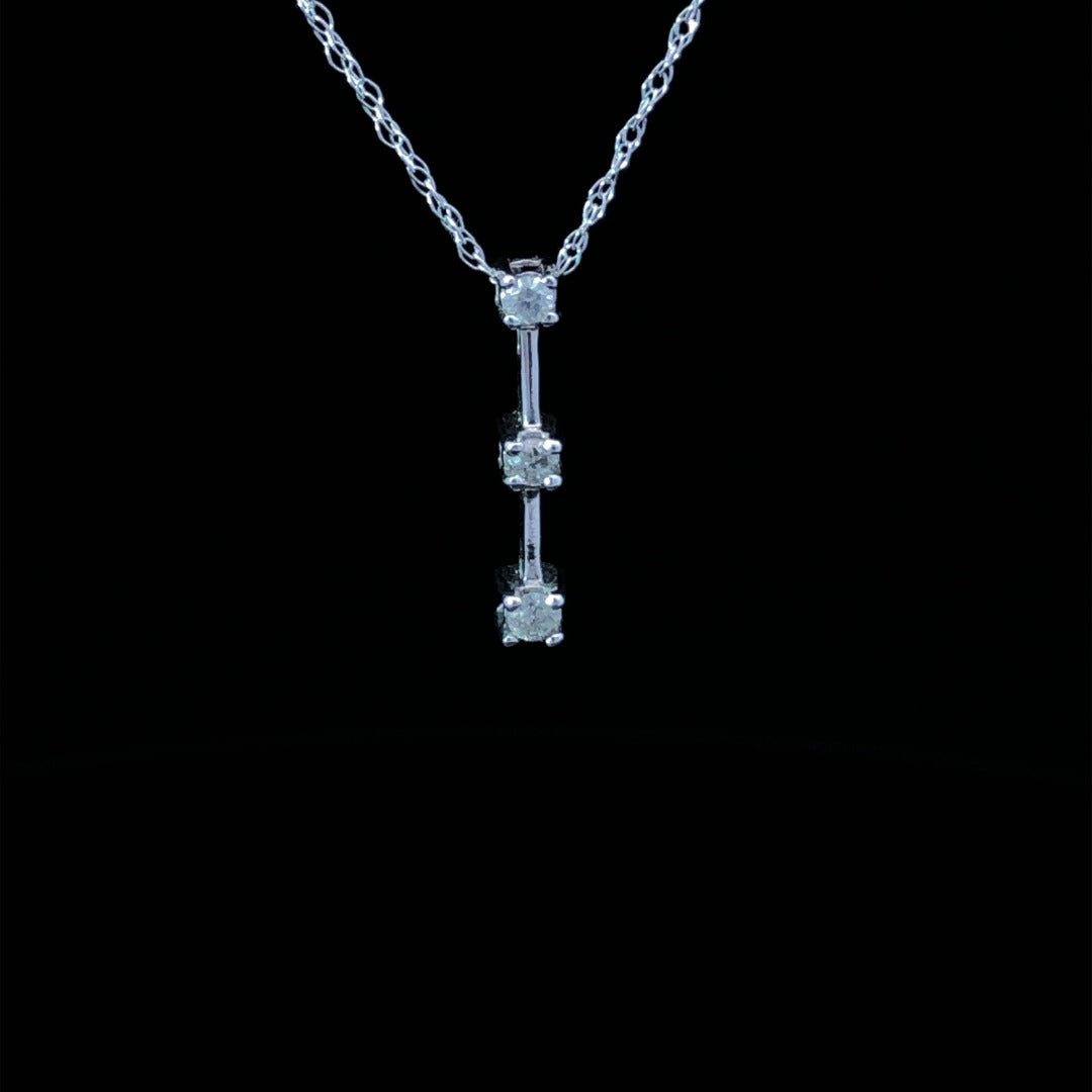 This handcrafted diamond pendant exudes elegance and sophistication, featuring three stunning diamonds totaling .10ctw set in 10kt white gold. Perfect for special occasions, it will be sure to radiate beauty and sparkle for years to come. Chain is not included.