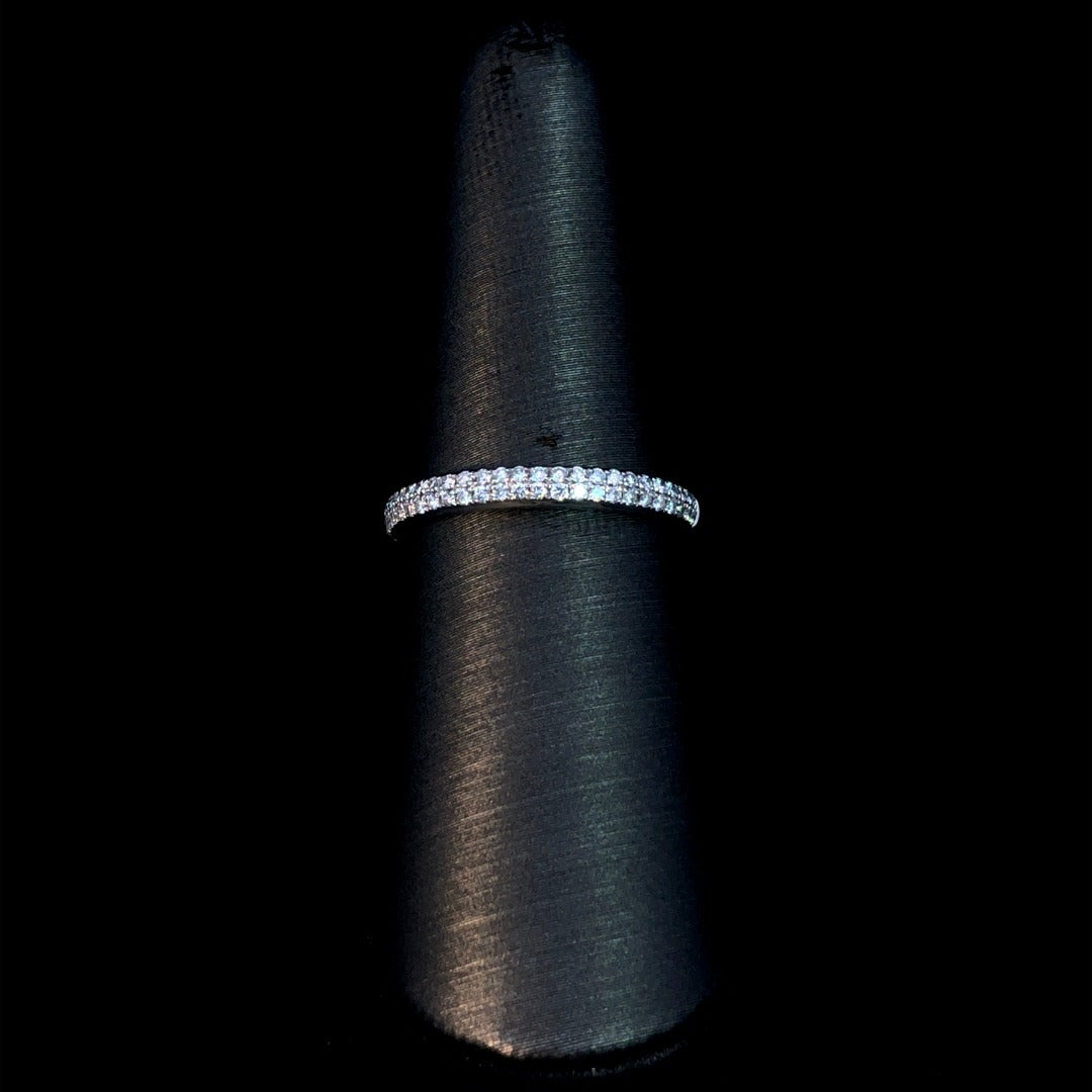 Indulge yourself with this stunning diamond band. Featuring .26ctw of round diamonds, meticulously pave set in luxurious 14kt white gold. Elevate any outfit with a touch of elegance and sparkle. A must-have piece for any jewelry collection. This ring is a size 6. If that size is not a perfect fit, first time sizing is free at the time of purchase. Additional sizing fees may apply.