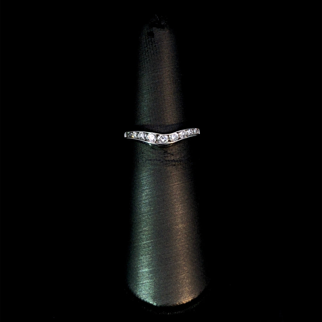 Add a touch of elegance to any outfit with this 14kt white gold curved diamond band. Featuring .33ctw of sparkling round diamonds, this classic design is perfect for any occasion. Make a statement and elevate your style with this channel-set beauty. This ring is a size 6. If that size is not a perfect fit, first time sizing is free at the time of purchase. Additional sizing fees may apply.