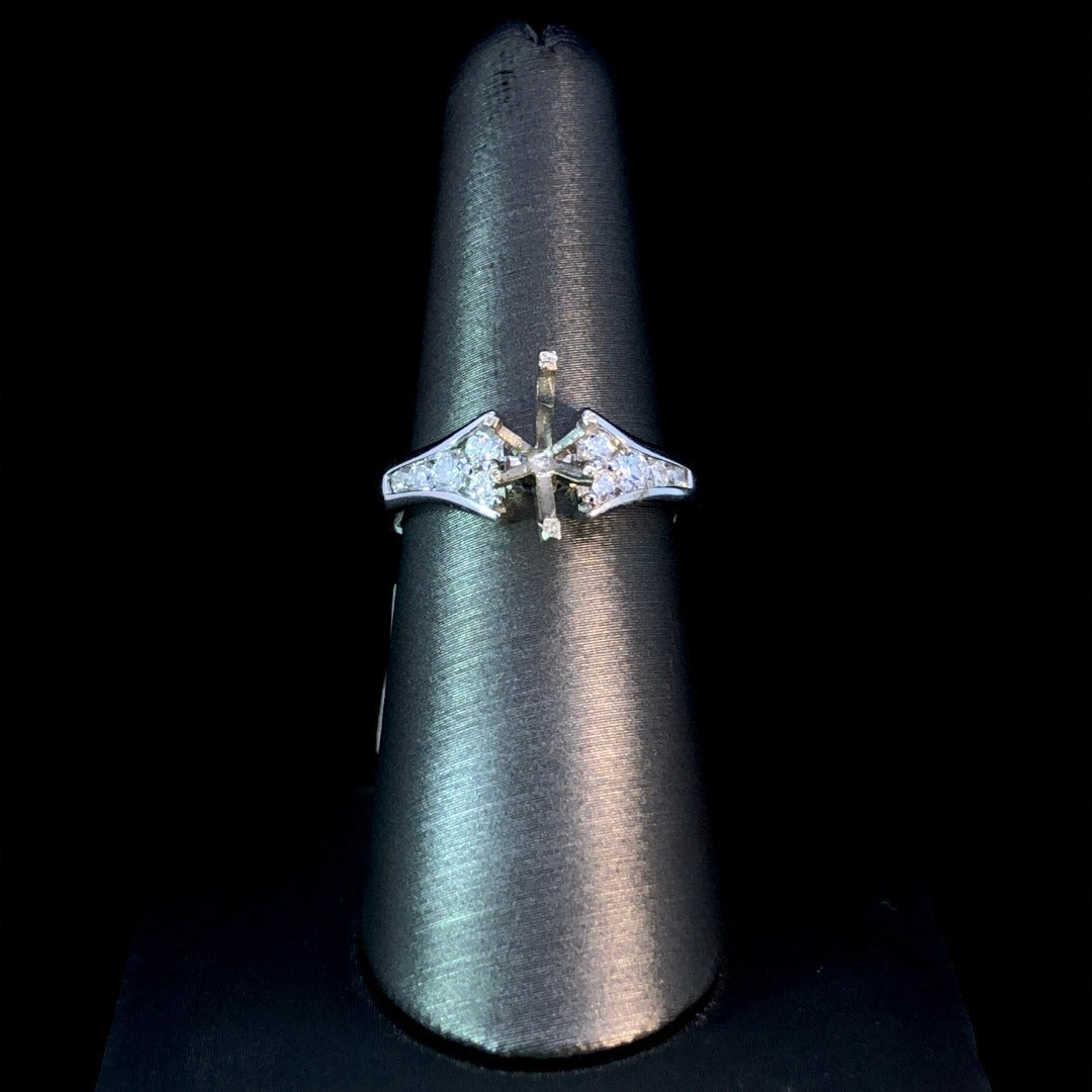 Crafted from luminous 14kt white gold, this breathtaking diamond semi mount sparkles with .40ctw of round diamonds tapering down the band. Showcase the perfect center stone of your choice and make a statement that is truly yours. Let this stunning design take your breath away! Price is for the semi mount only. Center stone will be added at an additional cost. This ring is a size 7. If that size is not a perfect fit, first time sizing is free at the time of purchase. Additional sizing fees may apply.
