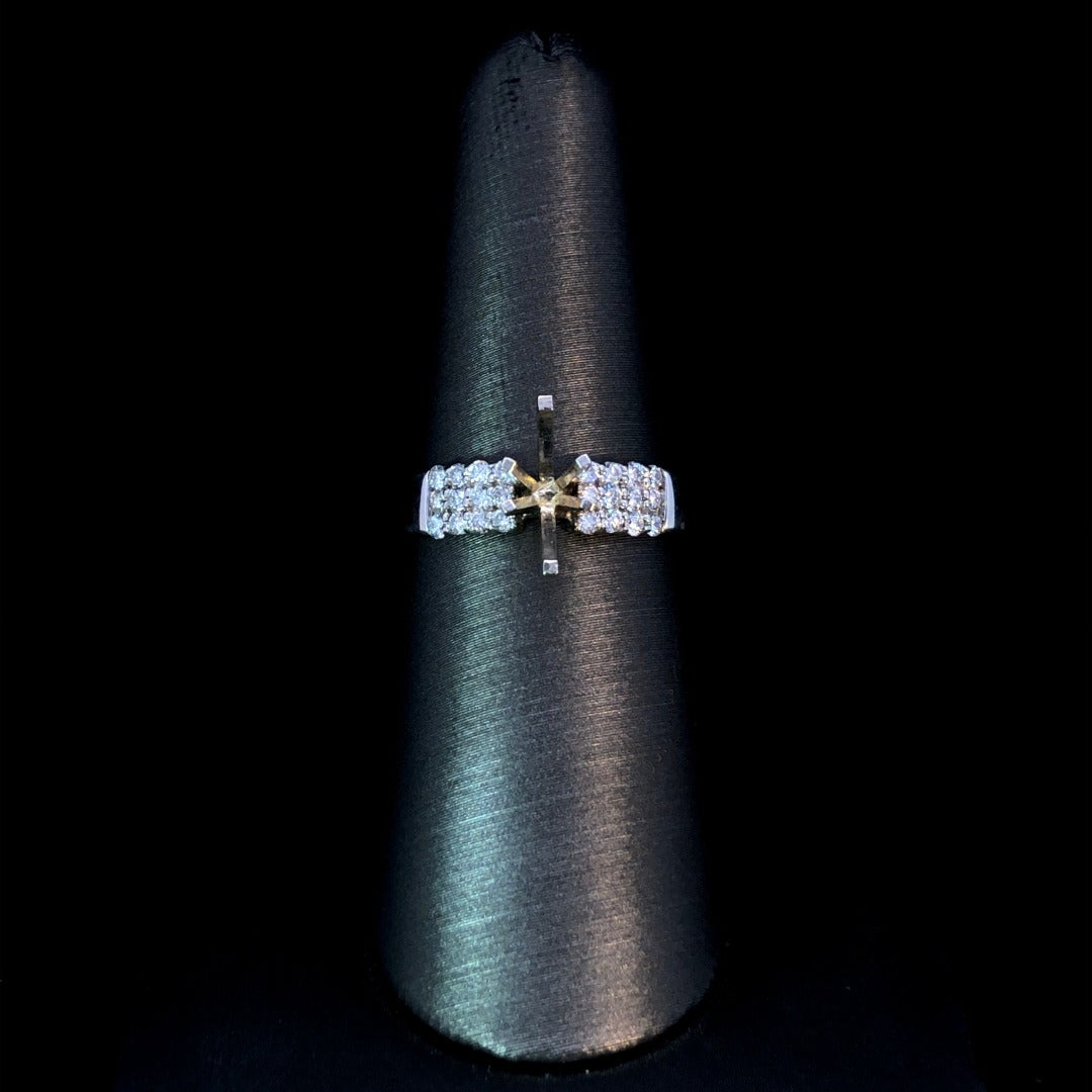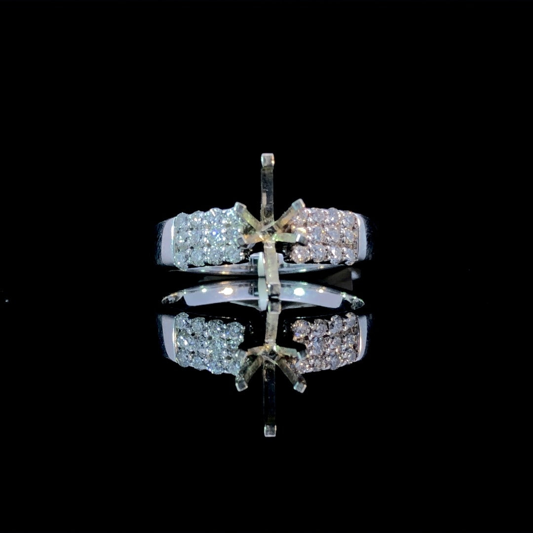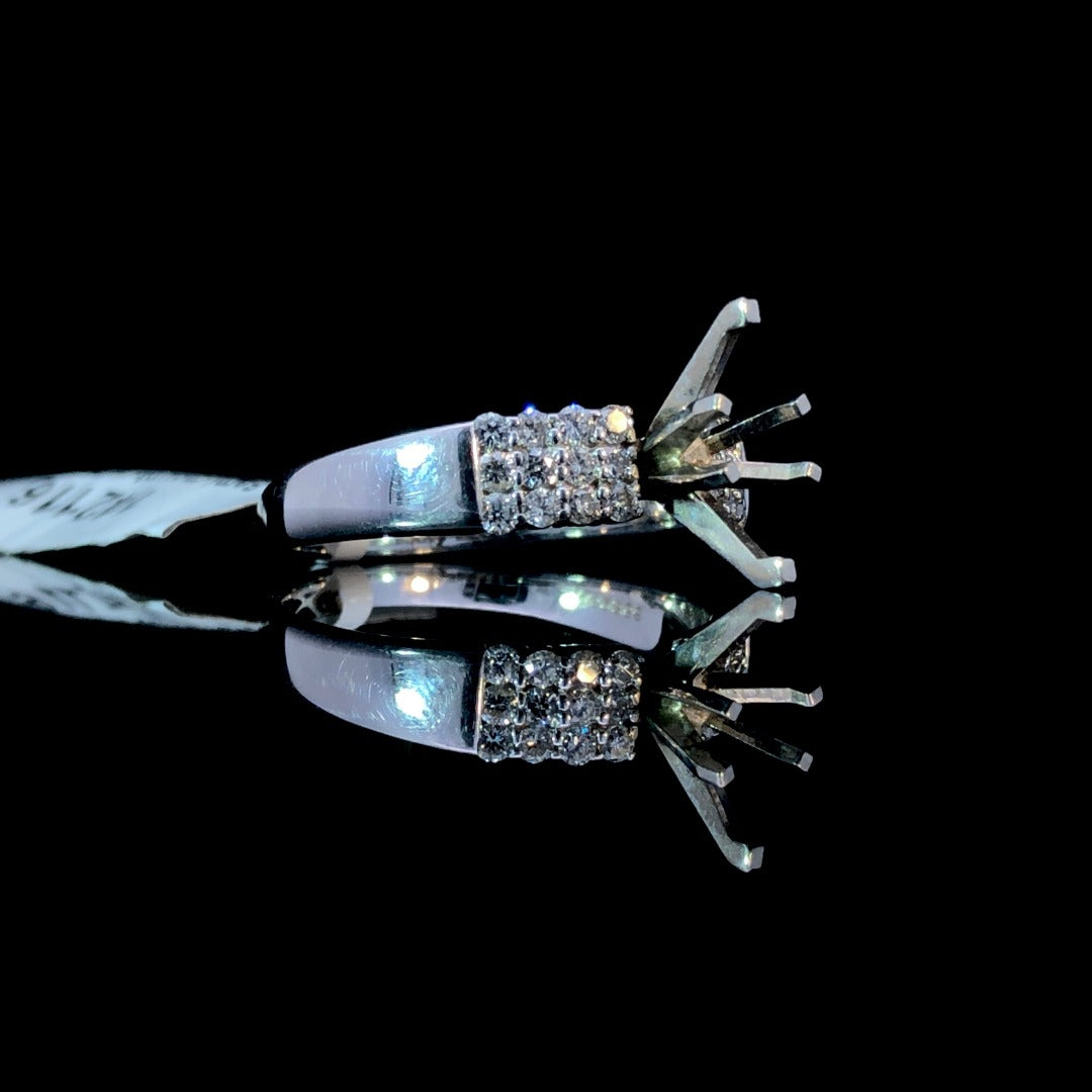 Indulge in luxury with our stunning diamond semi mount. Made of 14kt white gold and featuring .33ctw of sparkling round diamonds, this ring is the perfect backdrop for your chosen center stone. Choose from our selection of loose stones for a truly breathtaking final piece. Price is for the semi mount only. Center stone will be added at an additional cost. This ring is a size 7. If that size is not a perfect fit, first time sizing is free at the time of purchase. Additional sizing fees may apply.