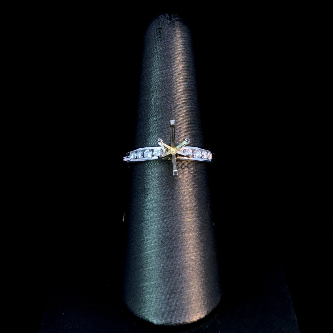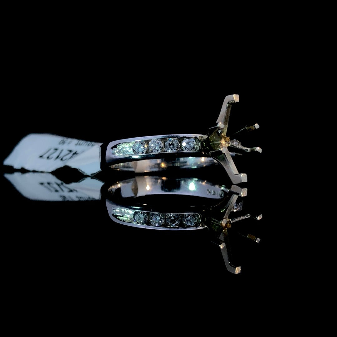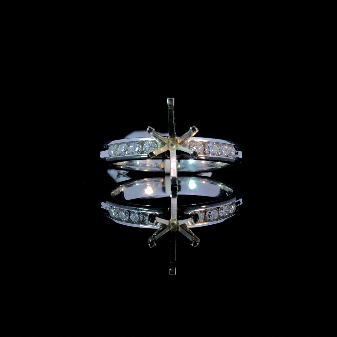 This classic diamond semi mount, featuring .26ctw of round diamonds channel set in 14kt white gold, is a timeless and elegant choice. Customize it with your own center stone from our collection of loose diamonds for a truly luxurious piece. Price is for the semi mount only. Center stone will be added at an additional cost. This ring is a size 7. If that size is not a perfect fit, first time sizing is free at the time of purchase. Additional sizing fees may apply.