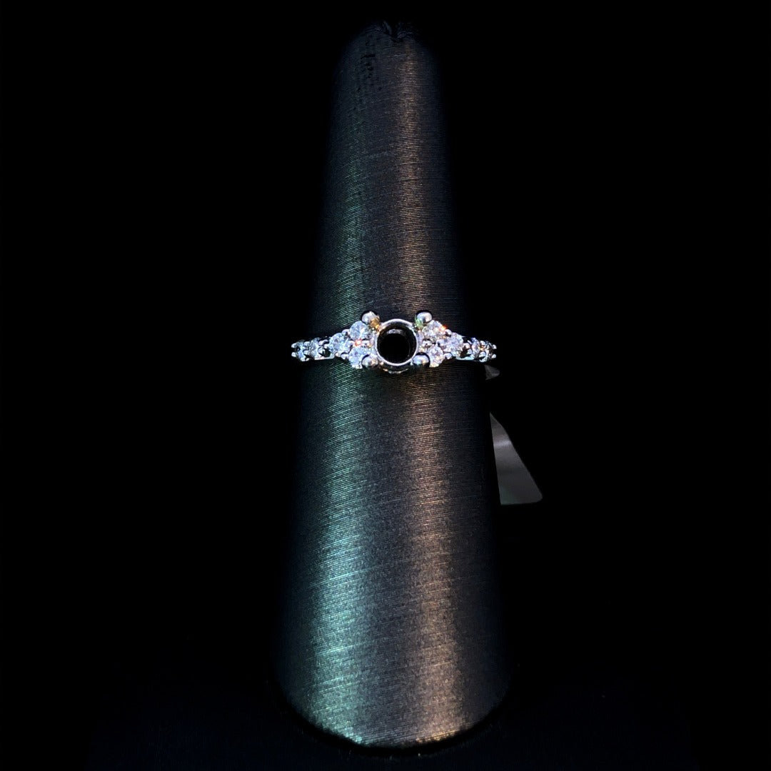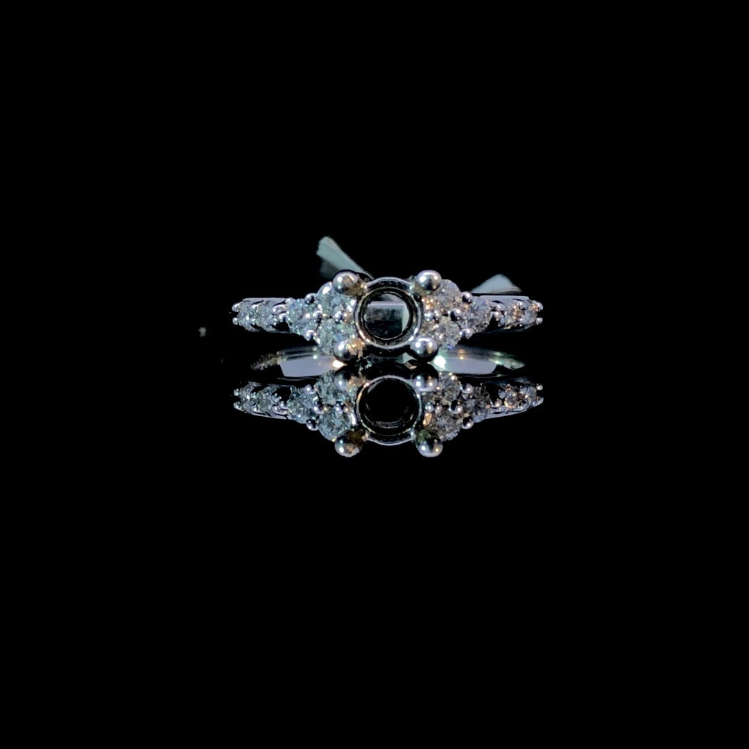 Crafted from 14kt white gold, this diamond semi mount offers a touch of elegance with .26ctw of round accent diamonds. Choose your own center stone from our extensive collection for a personalized touch. A timeless piece that will shine for years to come. Price is for the semi mount only. Center stone will be added at an additional cost. This ring is a size 7. If that size is not a perfect fit, first time sizing is free at the time of purchase. Additional sizing fees may apply.