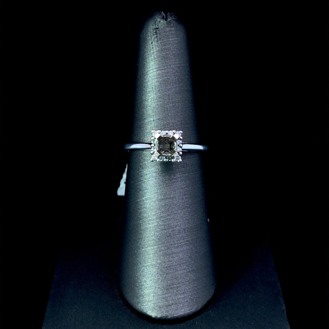 Create a dazzling look with this classic semi mount, featuring a stunning square halo design encrusted with .15ctw of sparkling round diamonds. Crafted in 14kt white gold, this versatile piece allows you to choose your own center stone from our wide selection. Elevate your style with this elegant and customizable accessory! Price is for the semi mount only. Center stone will be added at an additional cost. This ring is a size 6.5. If that size is not a perfect fit, first time sizing is free at the time of purchase. Additional sizing fees may apply.