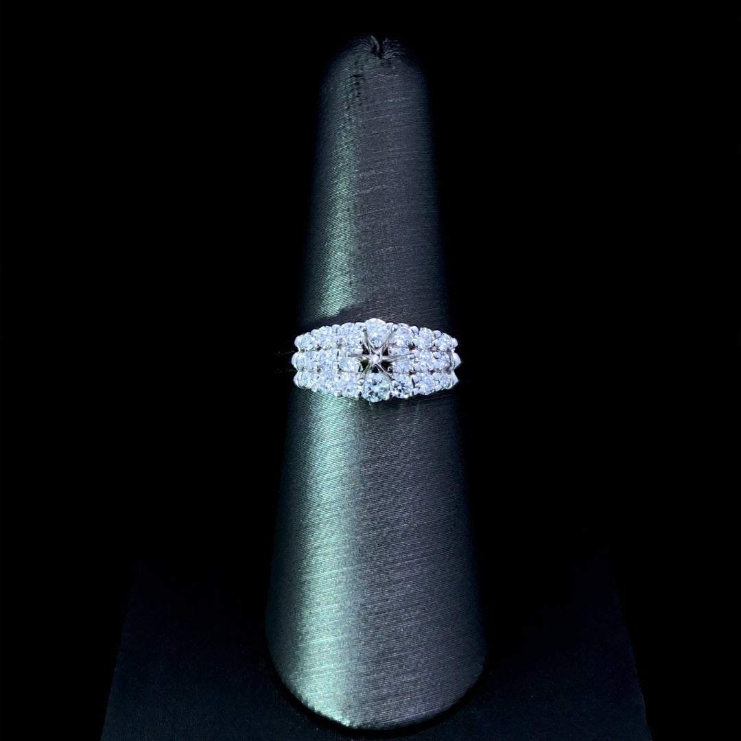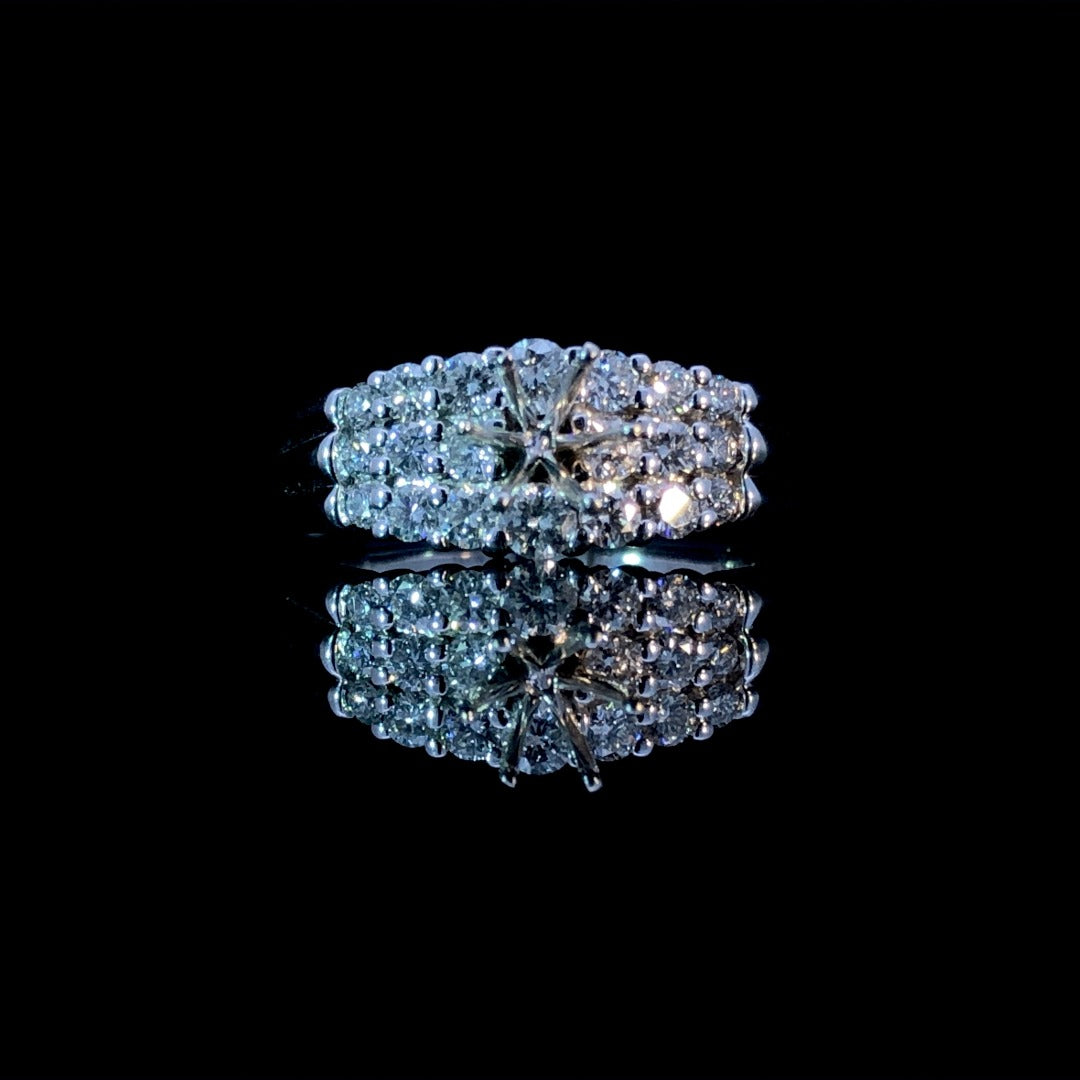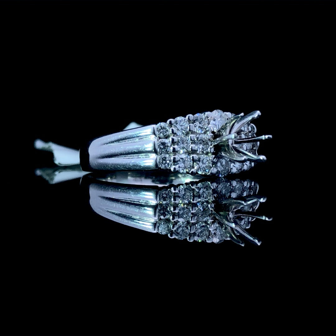 Create your own dream ring with this stunning 14kt white gold semi mount, featuring a total of .75ctw of sparkling round diamonds. Personalize it by selecting your own center stone from our wide variety, and our expert in house jewelers will set it for you. Make a statement with this beautiful and unique piece! Price is for the semi mount only. Center stone will be added at an additional cost. This ring is a size 7. If that size is not a perfect fit, first time sizing is free at the time of purchase. Additional sizing fees may apply.