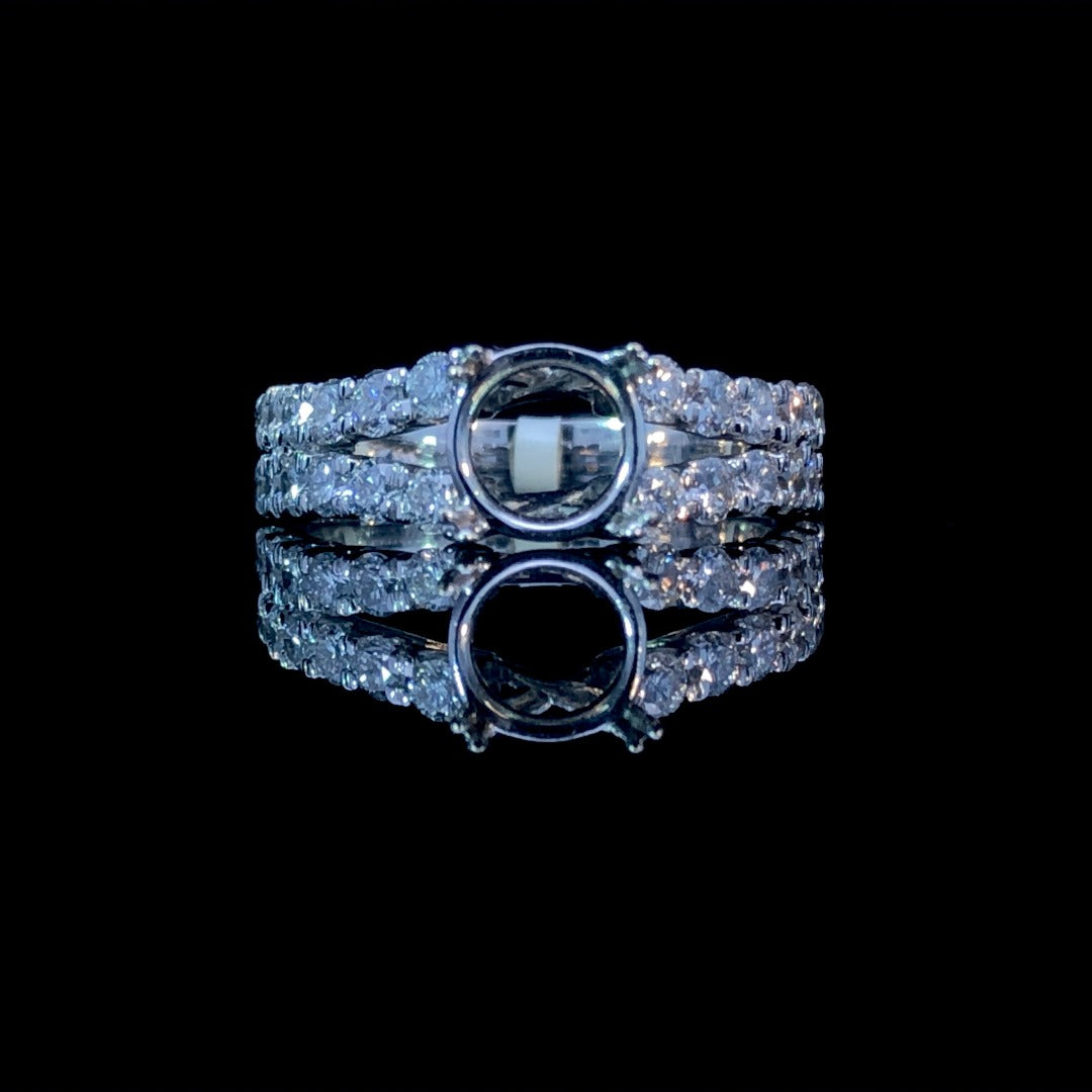 Make her dreams come true with this exquisite split shank diamond semi mount! Crafted in lustrous 14kt white gold, this dazzling style sparkles with 1.09ctw of dazzling round diamonds. Create a one-of-a-kind engagement ring that she'll always cherish! Price is for the semi mount only. Center stone will be added at an additional cost. This ring is a size 6.5. If that size is not a perfect fit, first time sizing is free at the time of purchase. Additional sizing fees may apply.