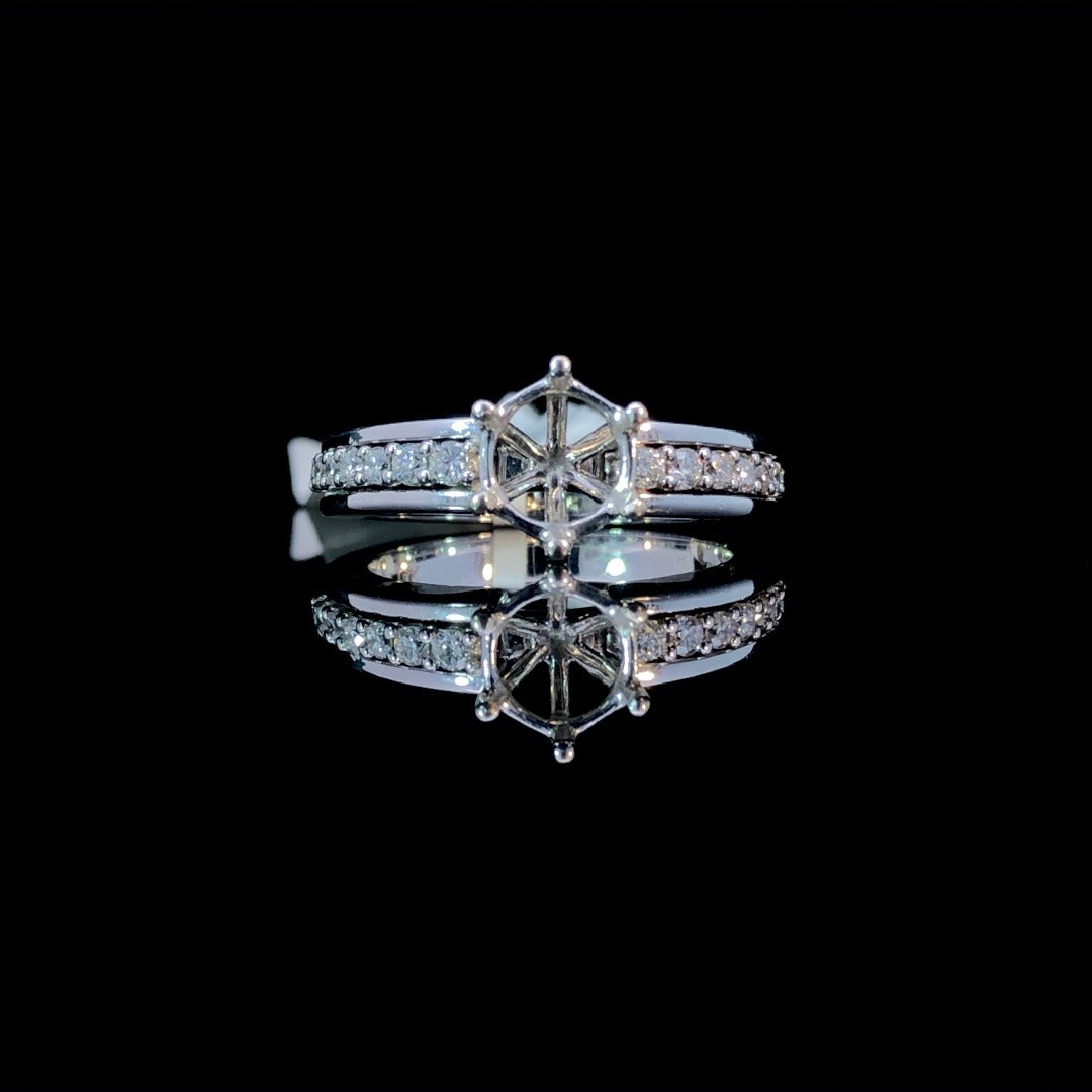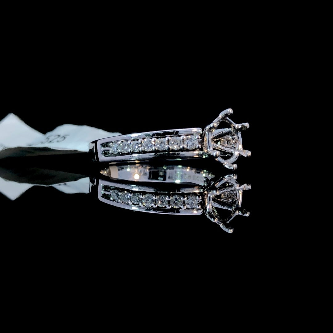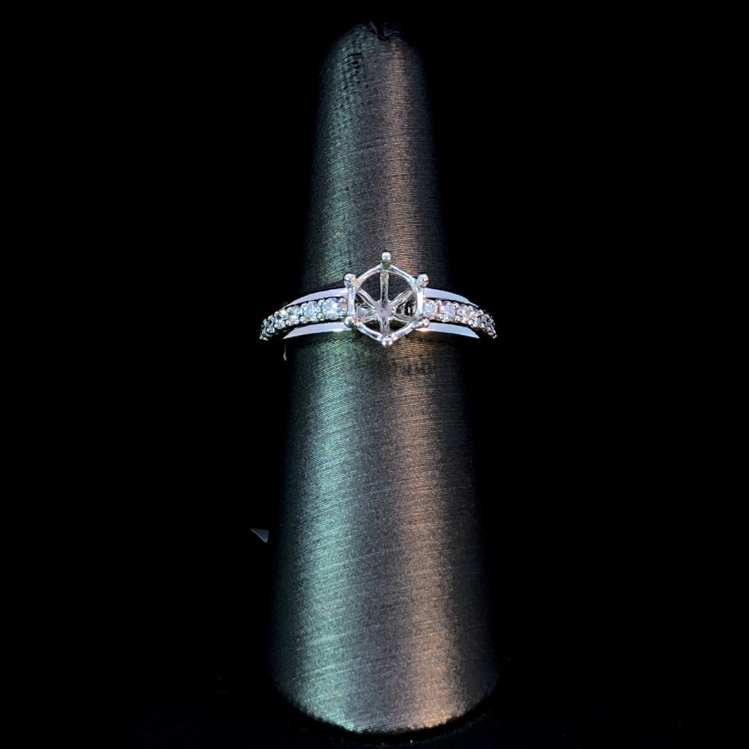 Experience timeless elegance with this stunning diamond semi mount, made from 14kt white gold and featuring .29ctw of sparkling round diamonds. Personalize your look by selecting from our array of loose stones and creating your own unique, breathtaking piece. Price is for the semi mount only. Center stone will be added at an additional cost. This ring is a size 6.5. If that size is not a perfect fit, first time sizing is free at the time of purchase. Additional sizing fees may apply.