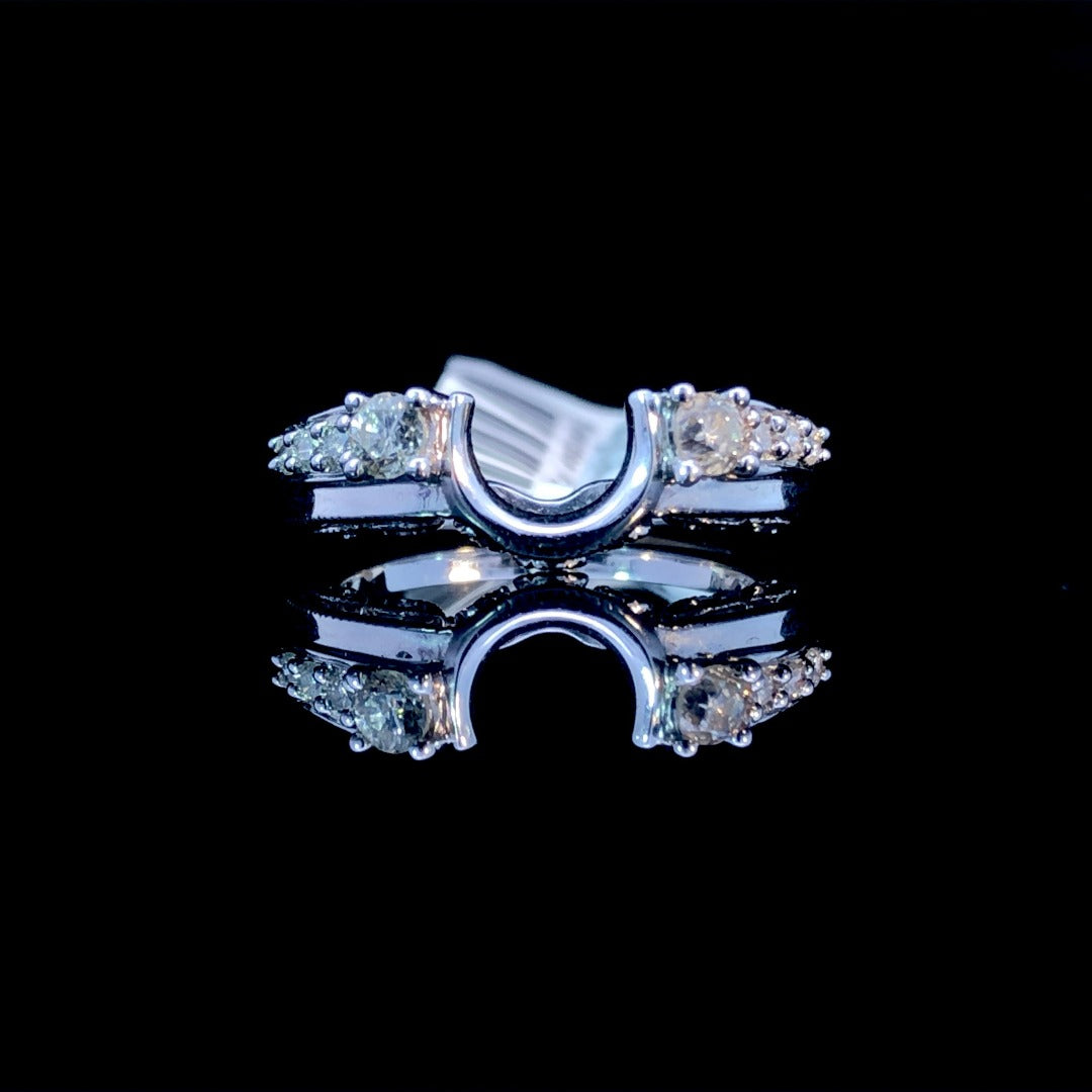 Make a timeless statement with this dazzling ring wrap. Crafted with .50ctw of sparkling diamonds set in 14kt white gold, this ring elegantly hugs your engagement ring for a truly unforgettable look. With its stylish decorative addition on the outside, you'll be turning heads wherever you go. Show off your bling in stylish perfection! This ring is a size 6. If that size is not a perfect fit, first time sizing is free at the time of purchase. Additional sizing fees may apply.