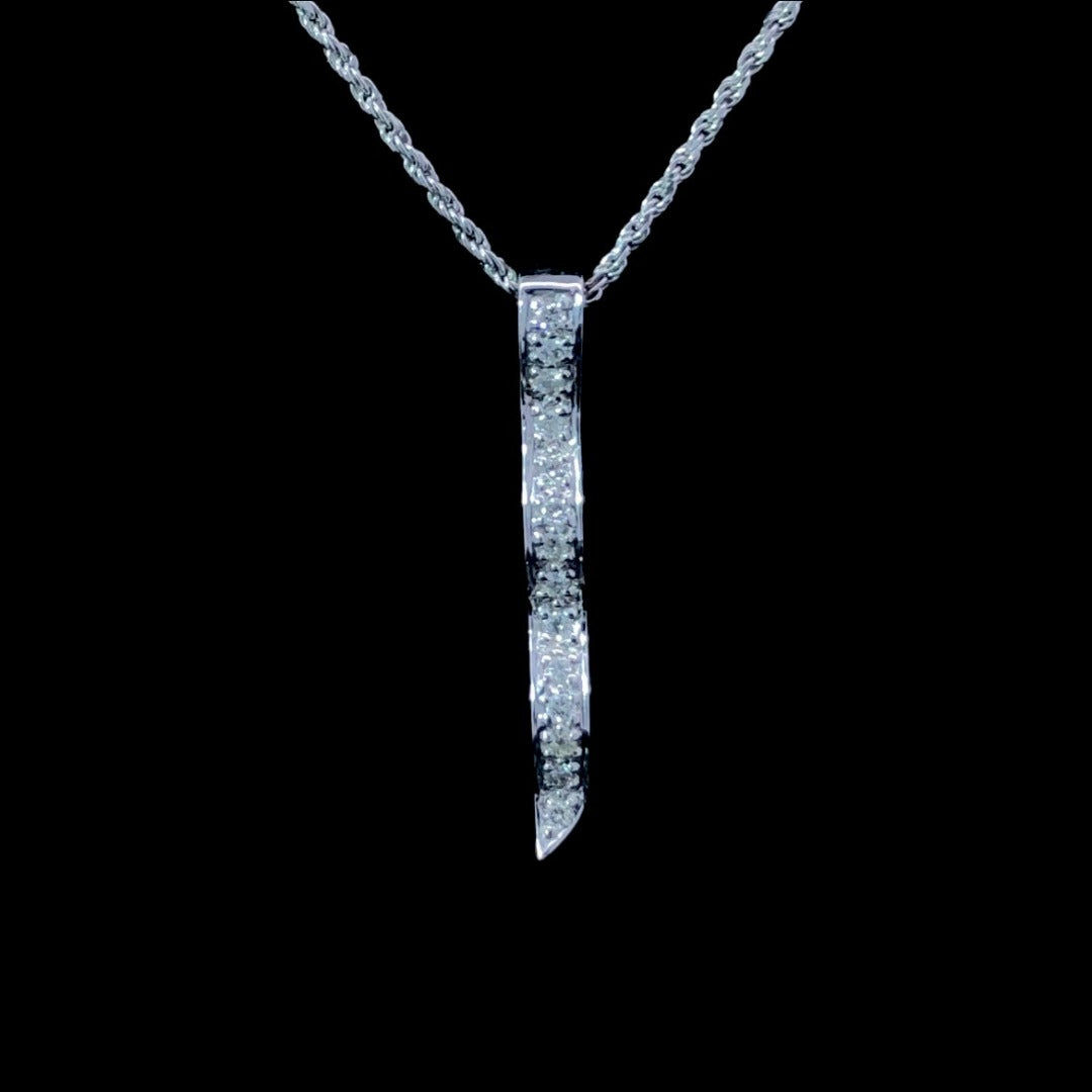 This pendant is a dazzling statement piece featuring a magnificent 0.16ctw of round diamonds in a striking wavy 18kt white gold setting. Showcasing eye-catching brilliance and a timeless design, this pendant is sure to be treasured for years to come. Chain is not included.
