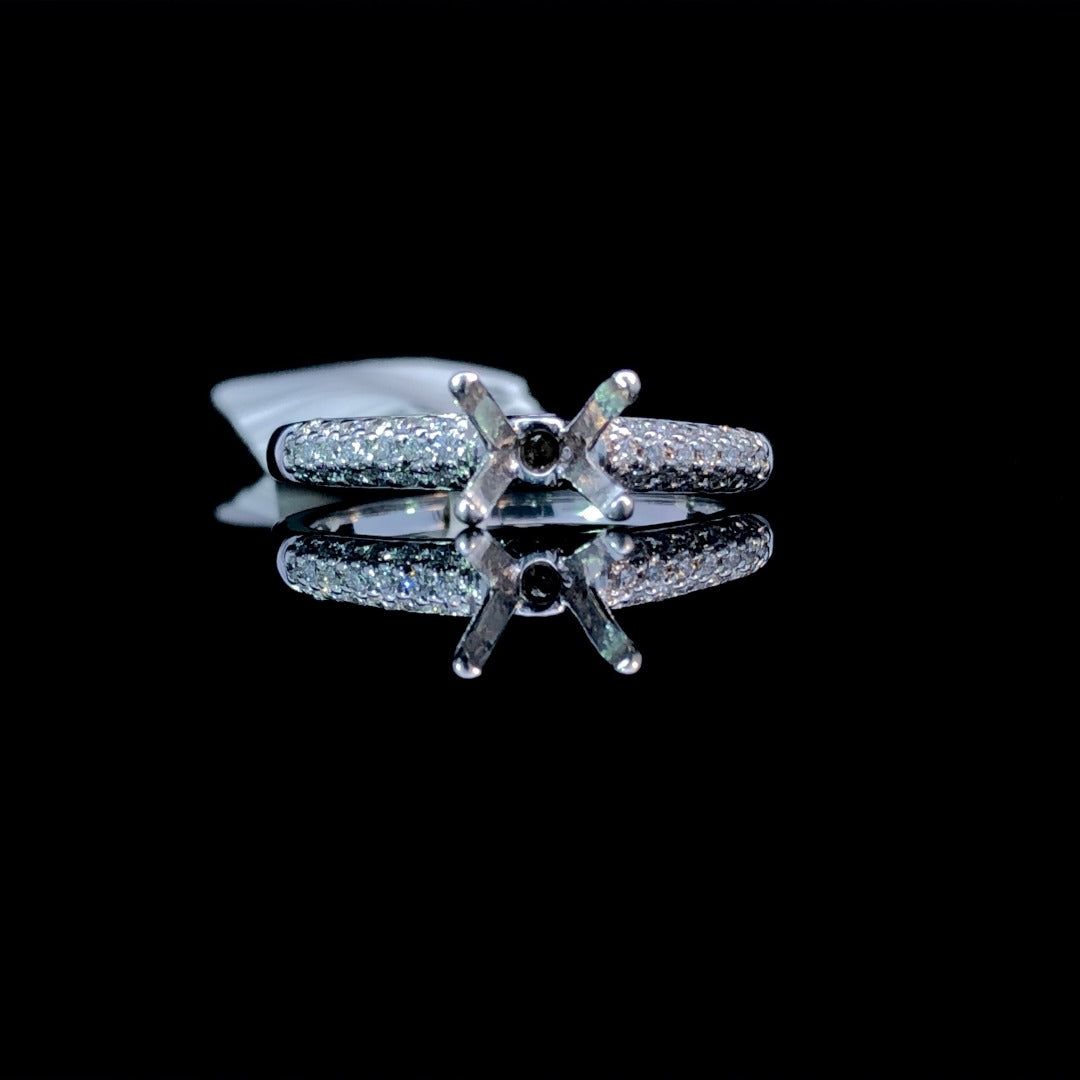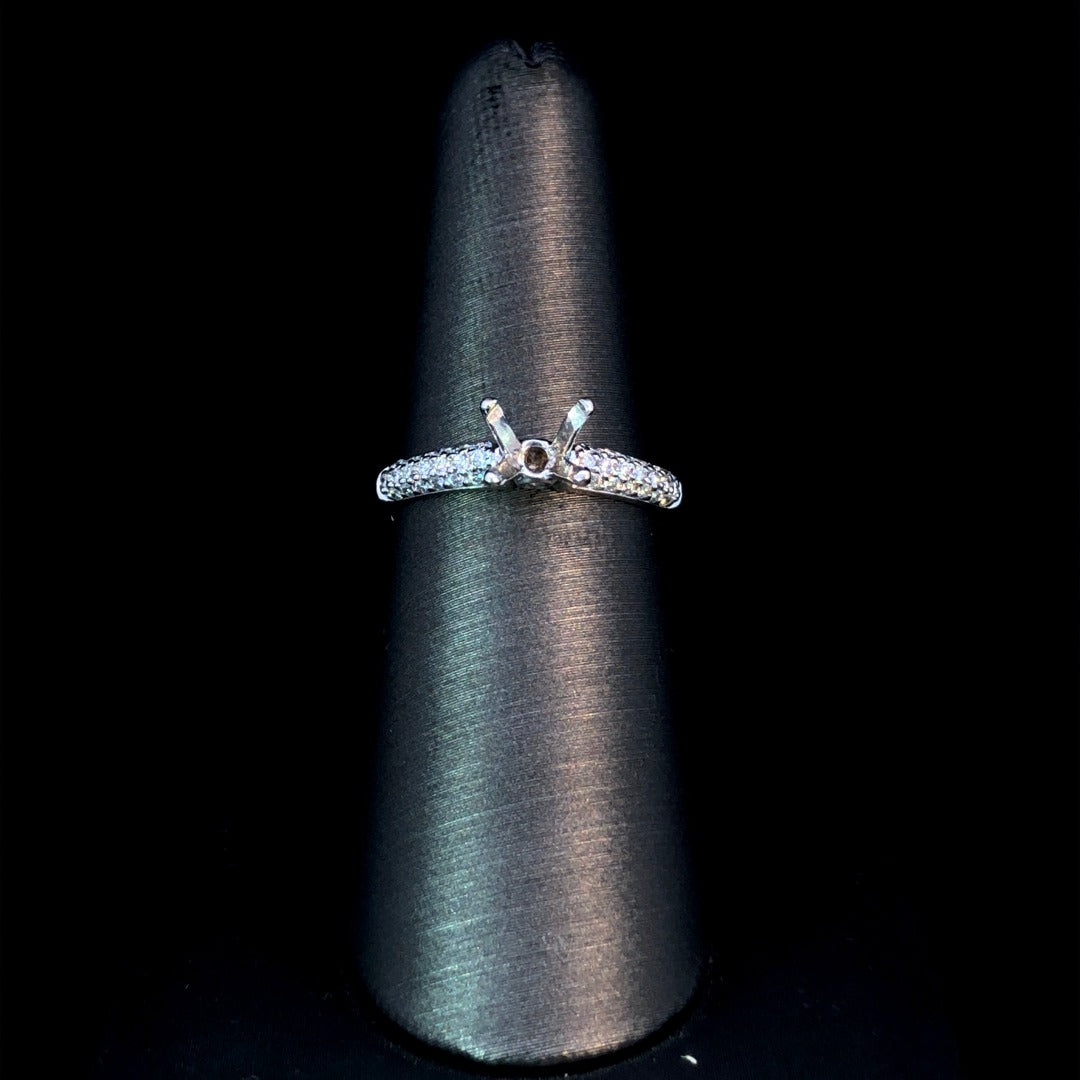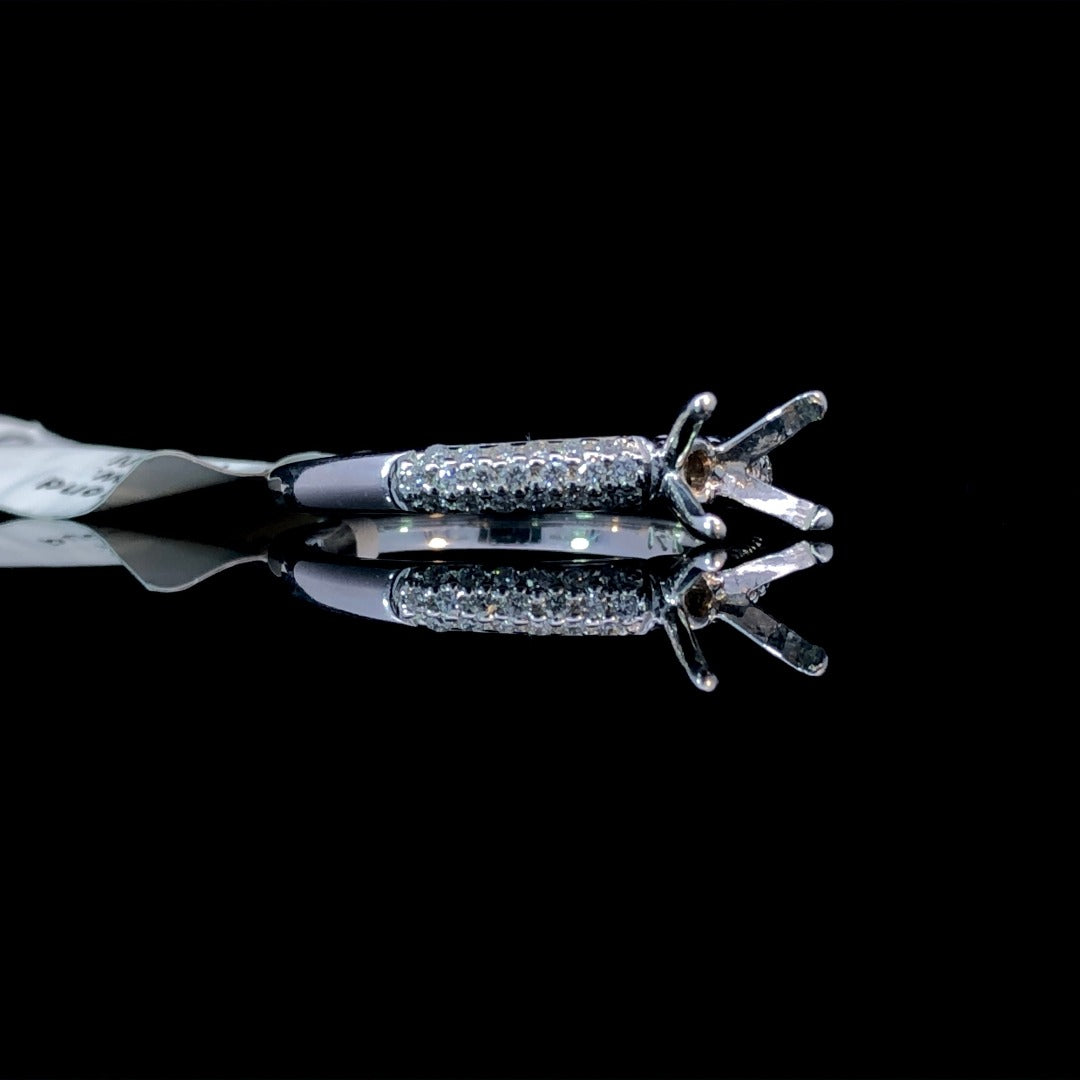 Put a personal spin on classic elegance with our diamond semi mount. Featuring .22ctw of round pave set diamonds in 14kt white gold, this stunning piece offers the option to choose your own center stone from our unbeatable selection. Make it a treasure to cherish forever. Price is for the semi mount only. Center stone will be added at an additional cost. This ring is a size 6.5. If that size is not a perfect fit, first time sizing is free at the time of purchase. Additional sizing fees may apply.