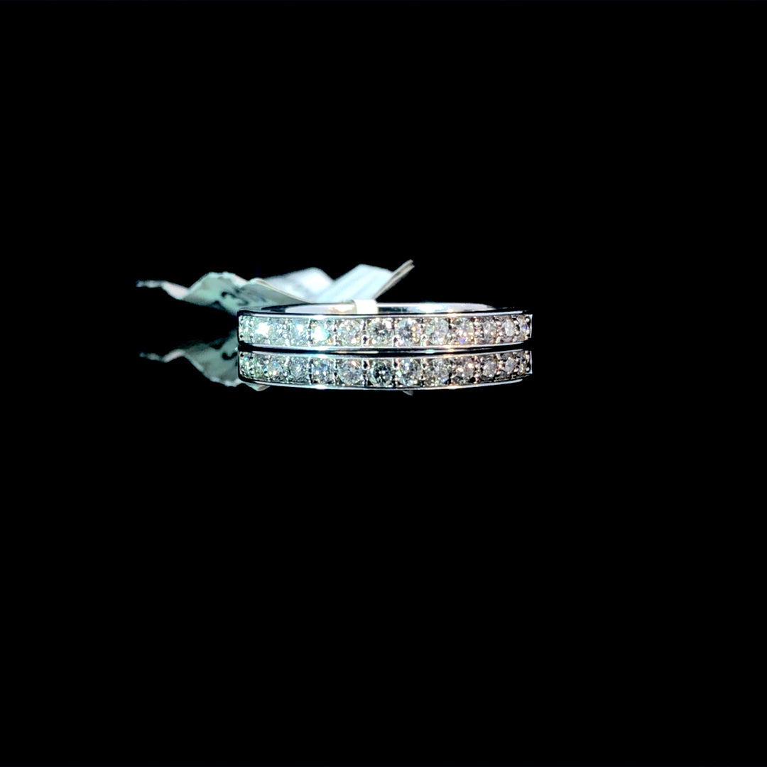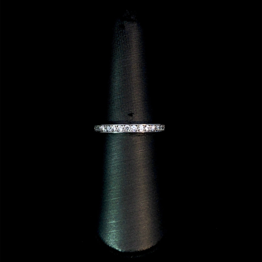 Add a touch of elegance to your wardrobe with this diamond band. Crafted in 14kt white gold, this classic design boasts a sparkling .26ctw of round diamonds. Perfect for any occasion, this band is the perfect addition to your jewelry collection. This ring is a size 7. If that size is not a perfect fit, first time sizing is free at the time of purchase. Additional sizing fees may apply.