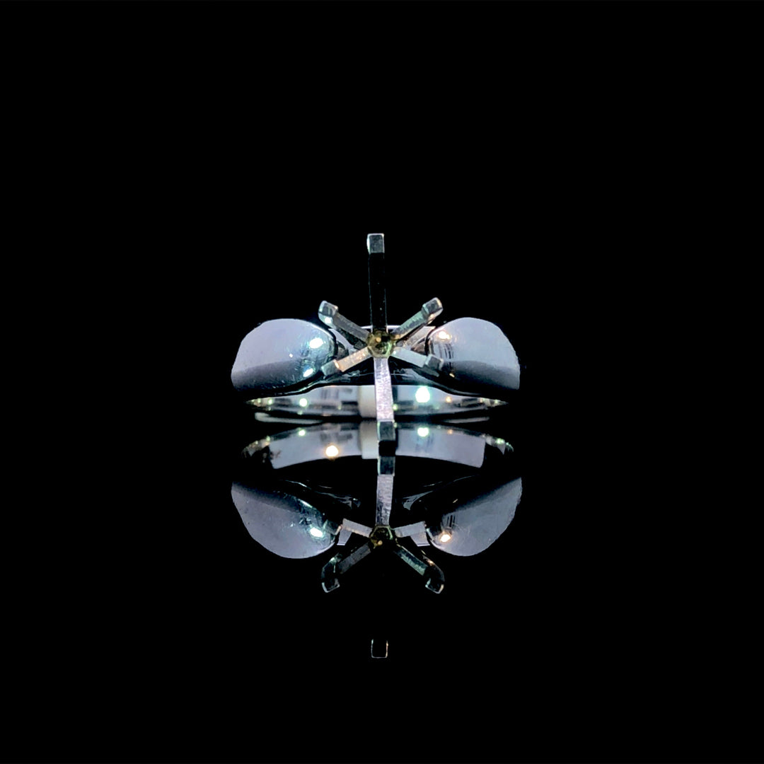 This classic diamond semi mount is designed to beautifully showcase any center stone you select from our extensive collection of loose stones. Crafted with a 14kt white gold tapered band, it draws attention to the centerpiece while offering elegant durability. The band’s thicker top that gradually tapers enhances comfort and style, making it an ideal foundation for your perfect ring. Price is for the semi mount only. Center stone will be added at an additional cost. This ring is a size 7. If that size is not a perfect fit, first time sizing is free at the time of purchase. Additional sizing fees may apply.