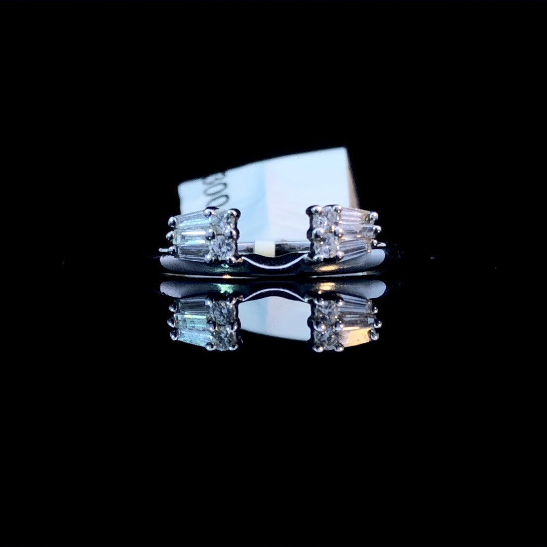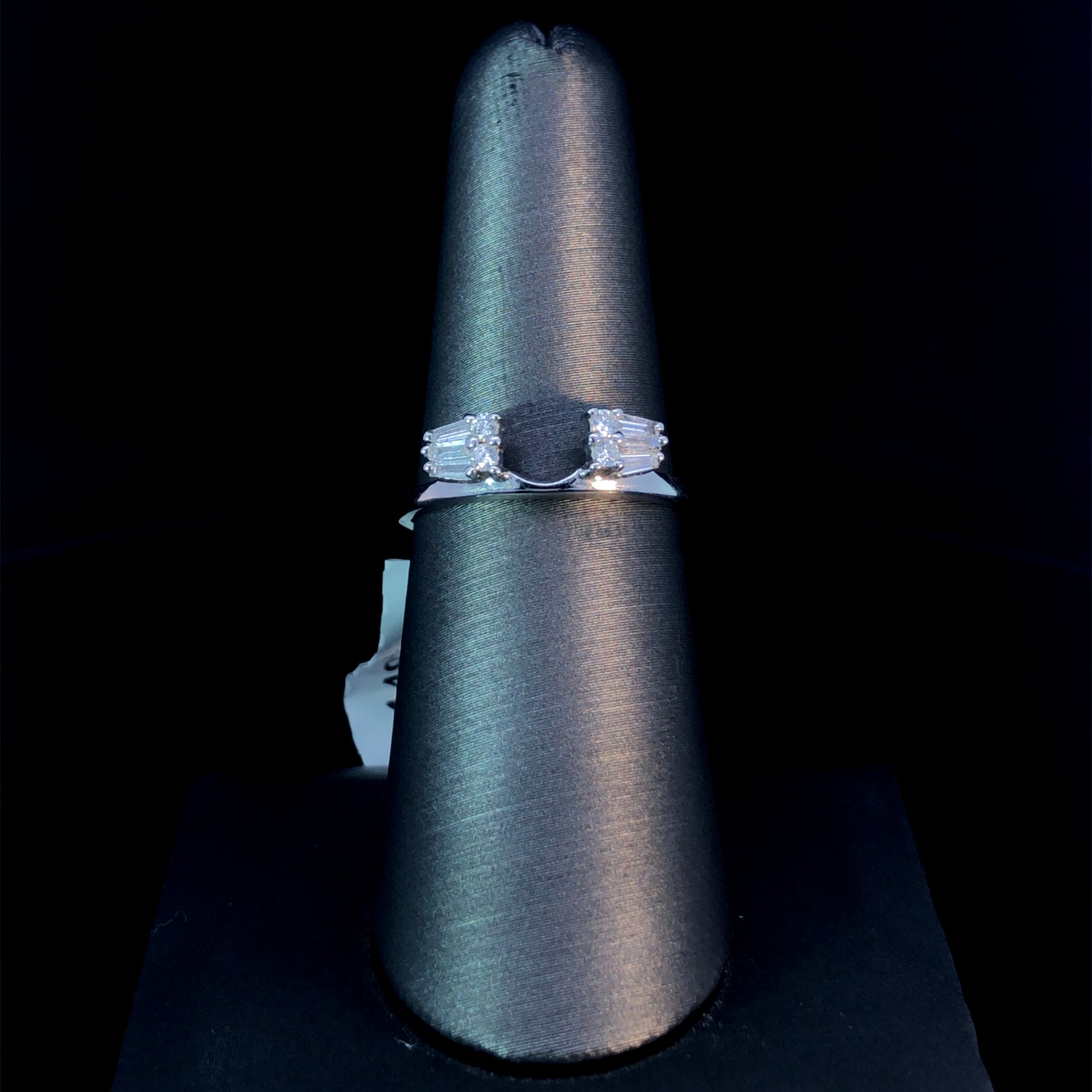This beautiful 14kt white gold ring enhancer features dazzling .25ctw of round and baguette diamonds. Wear it to add a unique and elegant touch to your bridal set for a stunning look you'll love forever! Say "I do" to this dazzling ring enhancer! This ring is a size 7. If that size is not a perfect fit, first time sizing is free at the time of purchase. Additional sizing fees may apply.