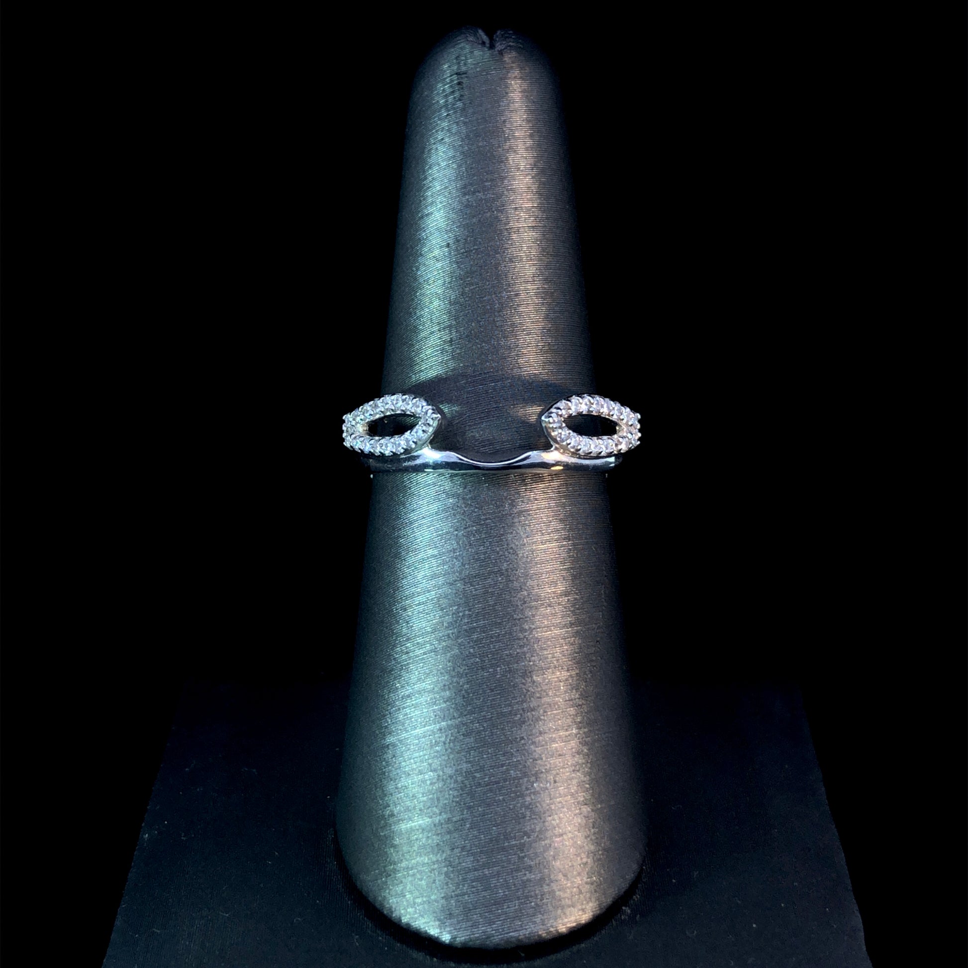 Adorn your bridal set with an extra touch of sparkle. This beautiful wrap features .24ctw of round diamonds set in 14kt white gold for an exquisite look. Enjoy the beauty of your special day with extra dazzle! This ring is a size 7. If that size is not a perfect fit, first time sizing is free at the time of purchase. Additional sizing fees may apply.