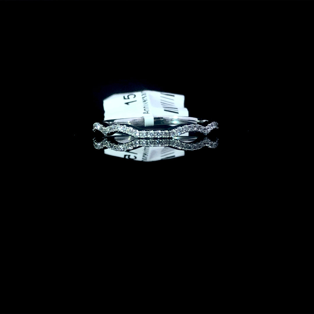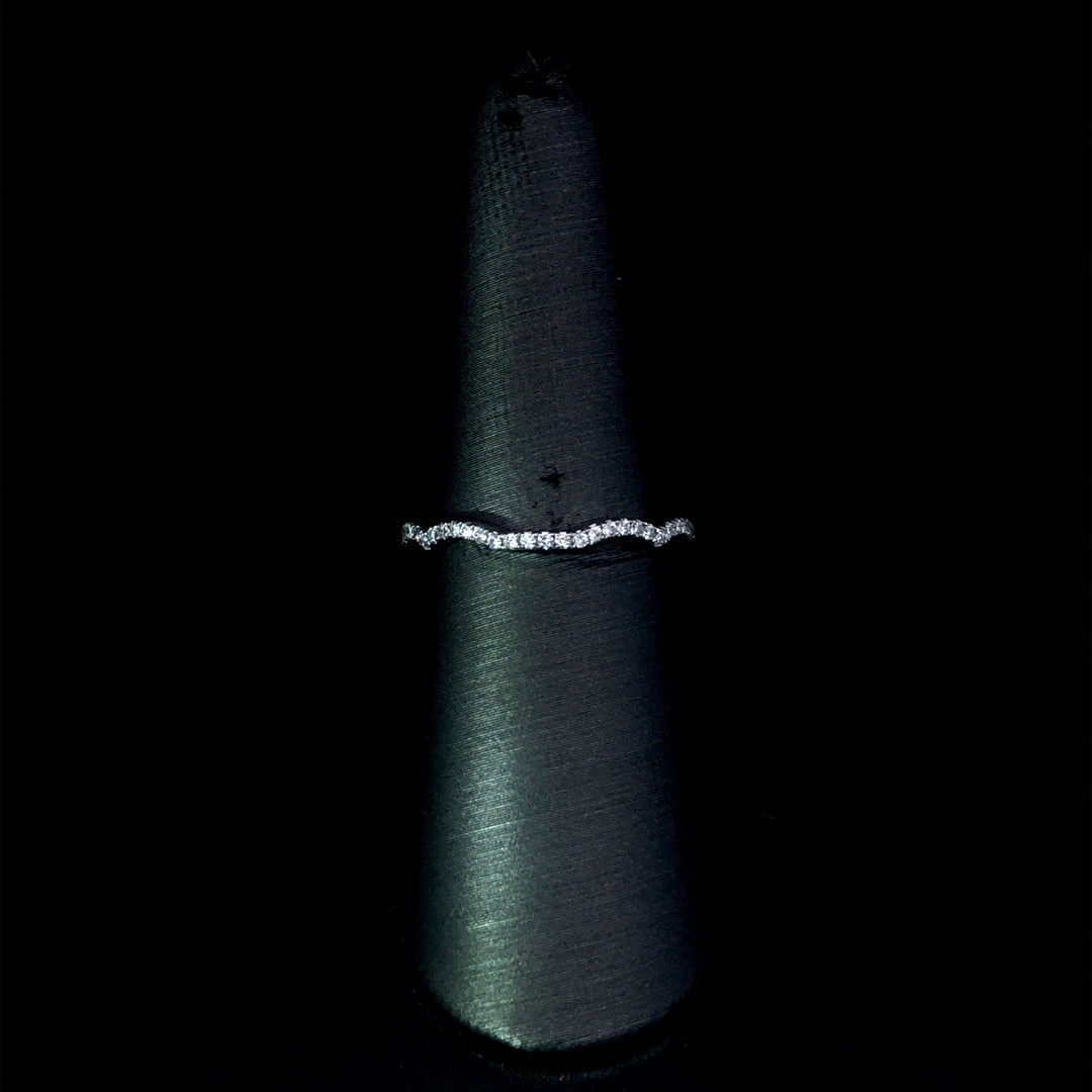 Enhance your engagement ring with this diamond contour band! Made of 14kt white gold with .14ctw of round diamonds, this delicate band fits seamlessly against specific engagement ring styles, ensuring no gaps. This ring is a size 7. If that size is not a perfect fit, first time sizing is free at the time of purchase. Additional sizing fees may apply.