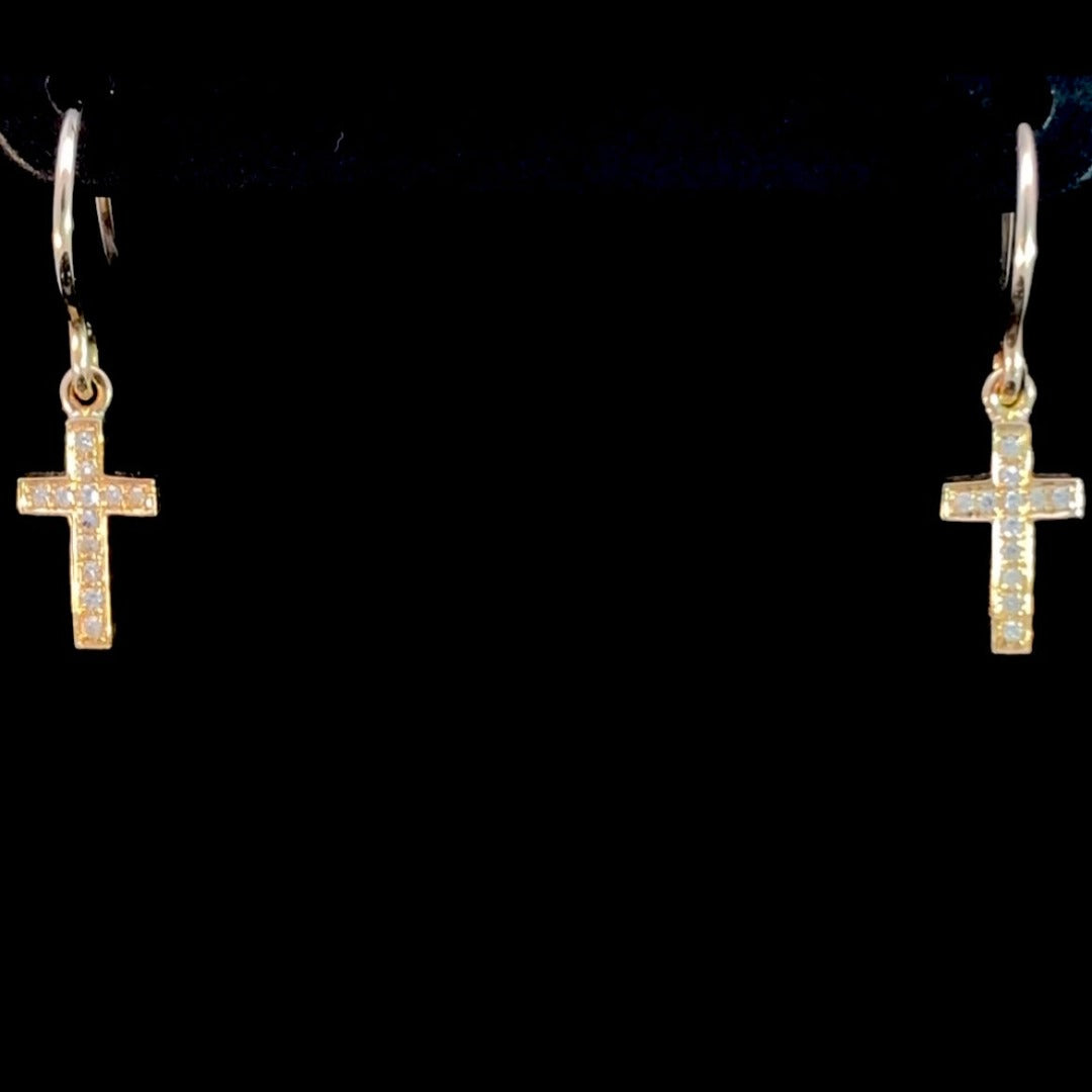 Symbolize faith and style with these exquisite 14kt yellow gold dangle cross earrings, studded with .06ctw of diamonds. Perfect for any special occasion, these exquisite earrings will add a timeless touch of sparkle and elegance to any outfit.