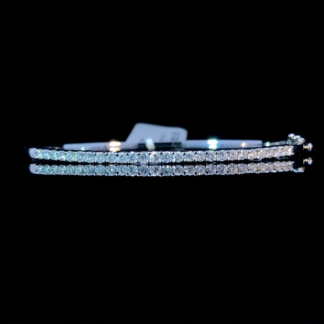 This beautiful 14kt white gold .92ctw diamond bangle bracelet is sure to make a statement. Its classic design adds an elegance to any outfit for any occasion. Embellished with dazzling diamonds, it will be the perfect accessory to light up your wardrobe!