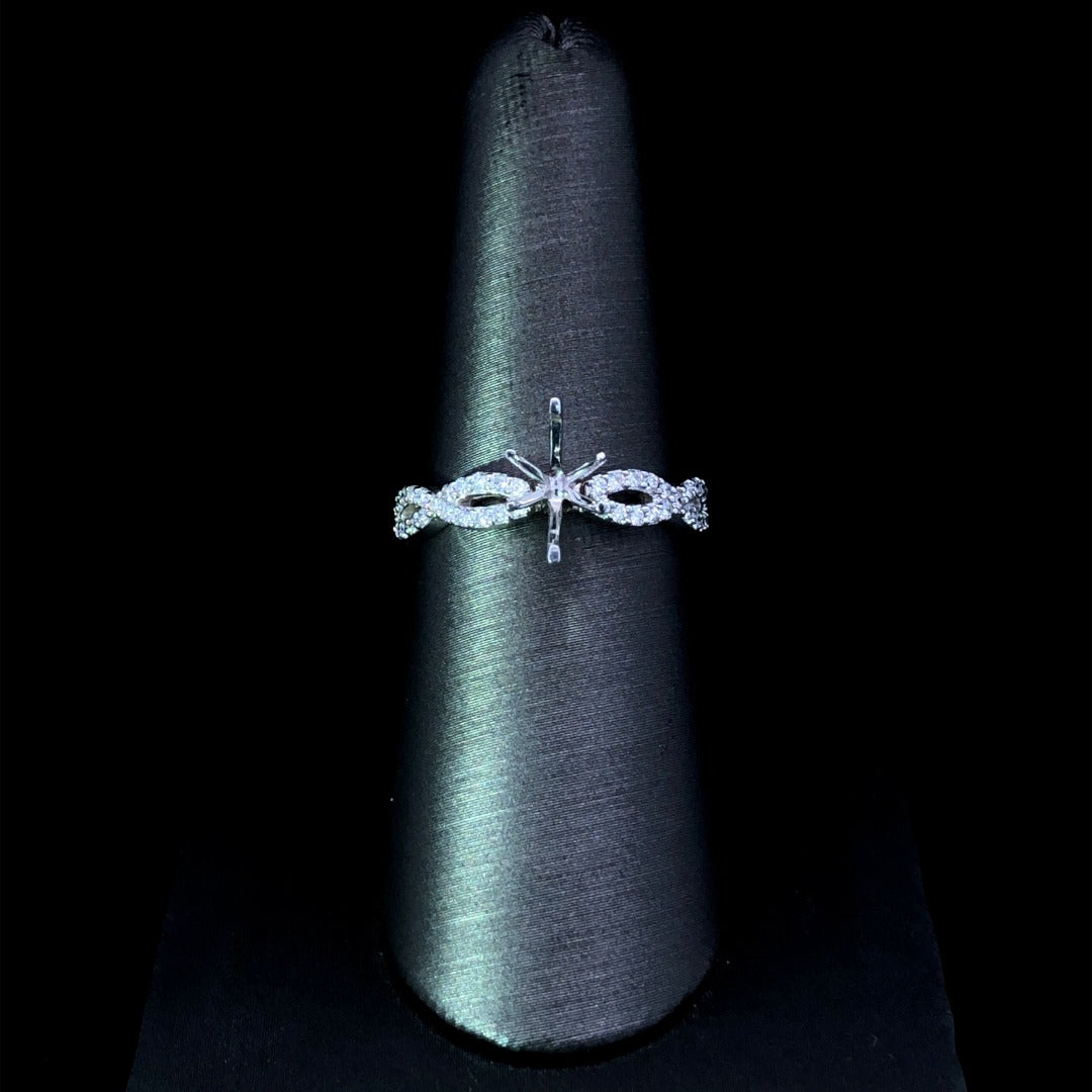 Make an unforgettable statement with this exquisite diamond semi mount. Crafted from 14kt white gold, this beautiful piece features a graceful, twisted-style band that's sparkled with .50ctw of dazzling round diamonds. Add your own center stone for an engagement ring that's truly one of a kind! Price is for the semi mount only. Center stone will be added at an additional cost. This ring is a size 7. If that size is not a perfect fit, first time sizing is free at the time of purchase. Additional sizing fees may apply.