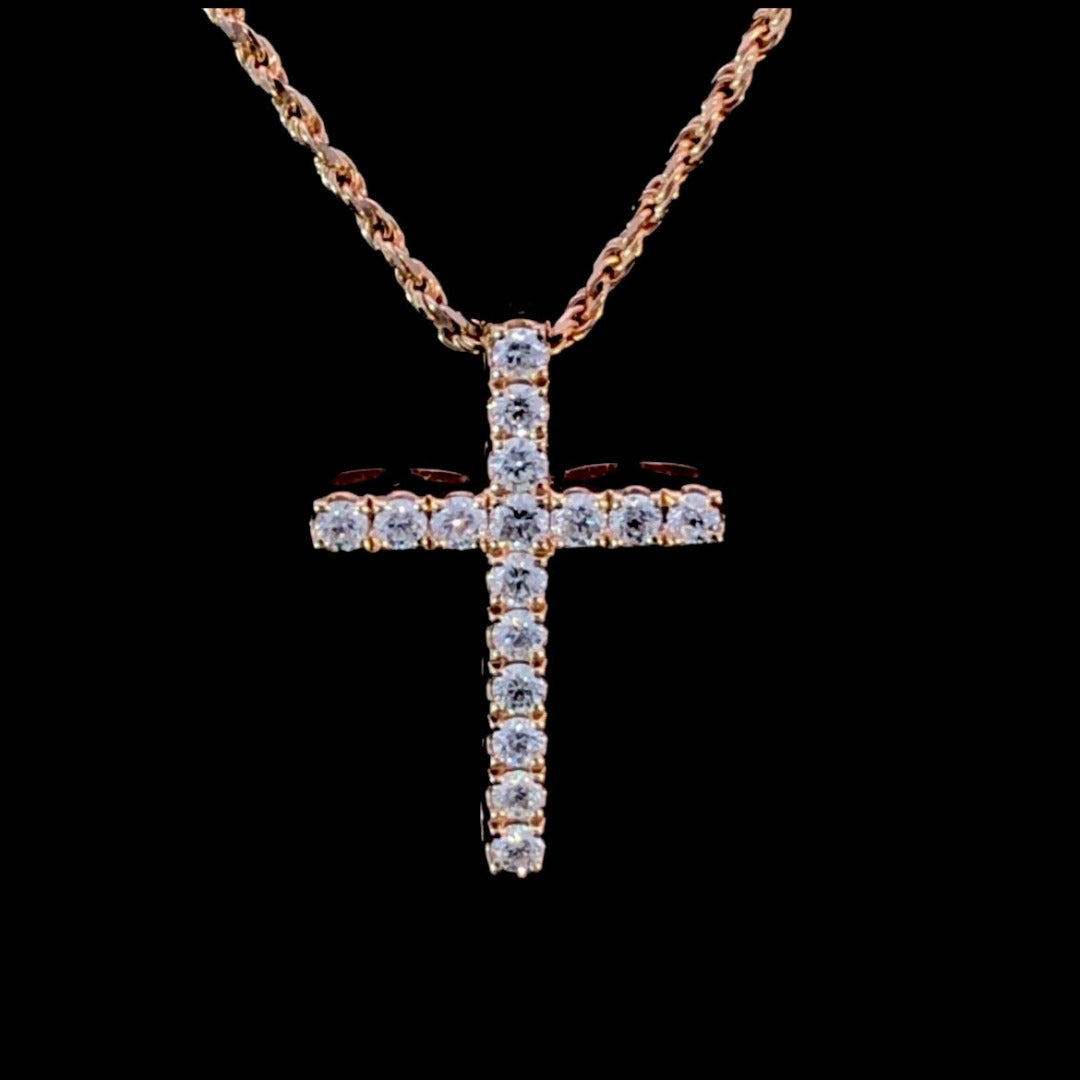 Declare your faith with this beautiful 14kt rose gold cross pendant. Enhanced by .23ctw of stunning round diamonds, this divine piece symbolizes love, hope and strength. Show your devotion with this stunning pendant! Chain is not included.
