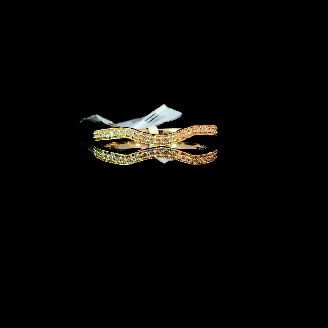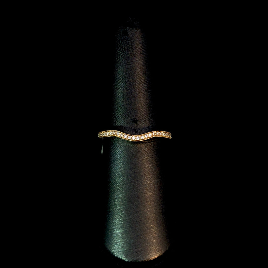 Add a touch of sparkle to your collection with this stunning curved diamond band. Crafted with .12ctw of round diamonds set in 14kt yellow gold, this band is both elegant and timeless. Perfect for any occasion, it's the perfect addition to any jewelry collection. This ring is a size 7. If that size is not a perfect fit, first time sizing is free at the time of purchase. Additional sizing fees may apply.