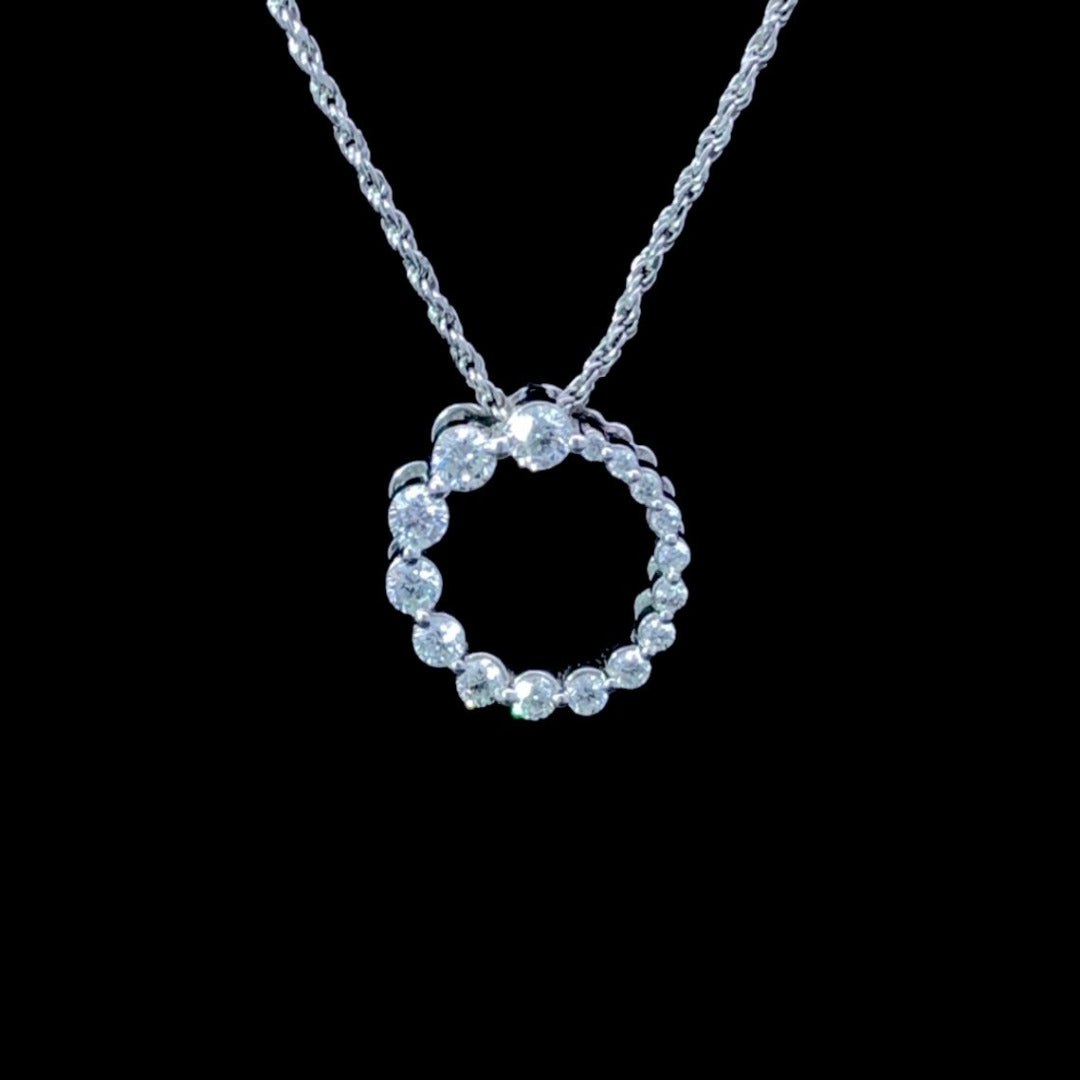 Luxury meets sophistication with this exquisite diamond pendant, crafted with 14kt white gold and featuring a half-carat of graduated diamonds arranged in a luminous circle. A show-stopping piece of jewelry to adorn your look with undeniable elegance. Chain is not included.