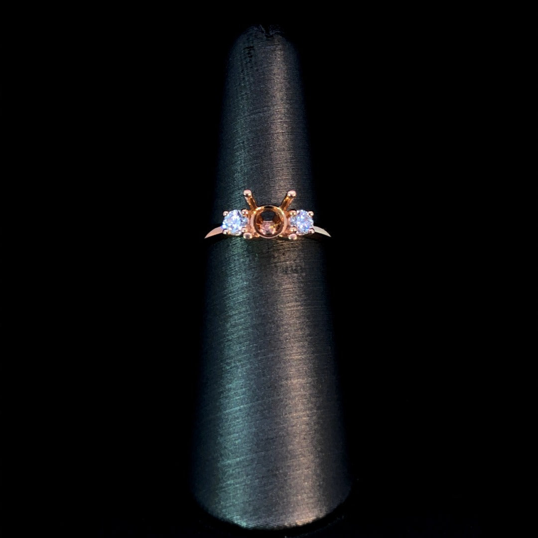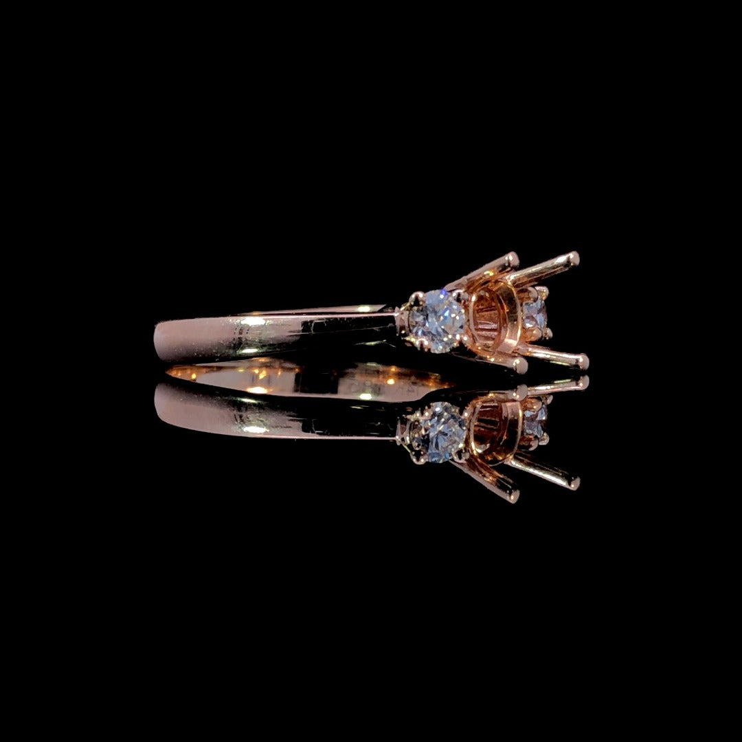 Create your own timeless beauty with this 14kt rose gold diamond semi mount. Featuring 2 round diamonds totaling .24ctw, this piece is elegantly designed for your chosen center stone. Choose from our exquisite selection for a truly unique ring. Price is for the semi mount only. Center stone will be added at an additional cost. This ring is a size 6.25. If that size is not a perfect fit, first time sizing is free at the time of purchase. Additional sizing fees may apply.