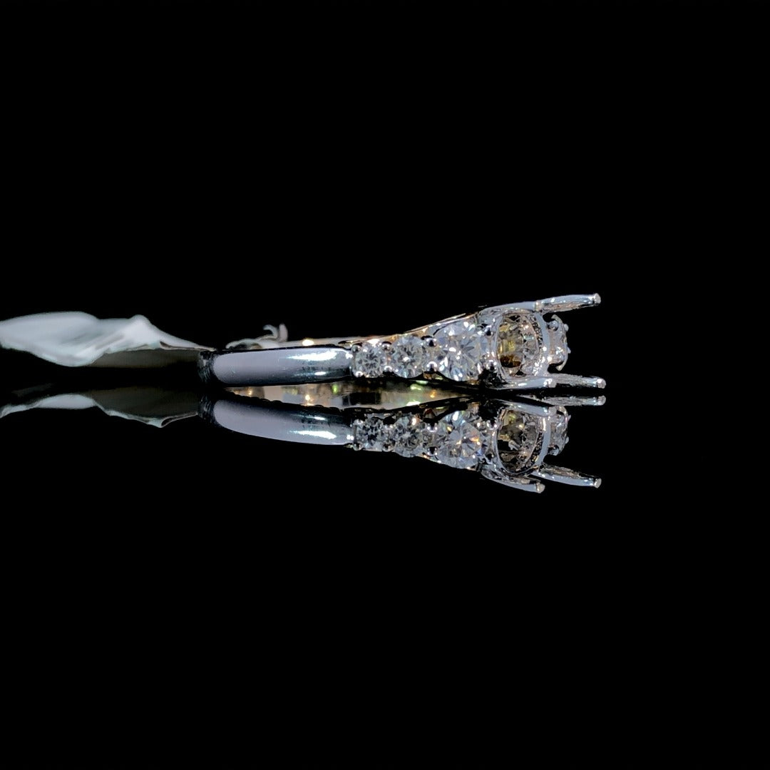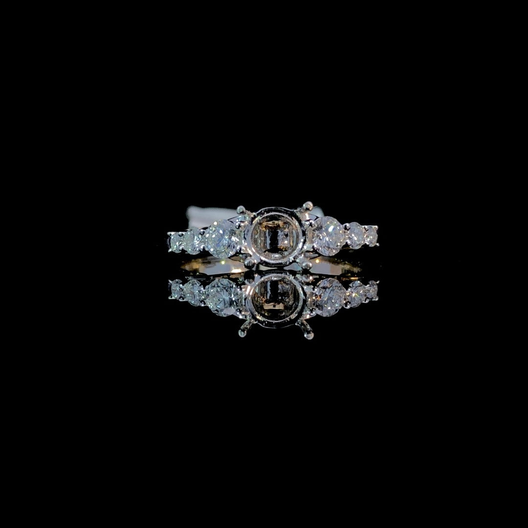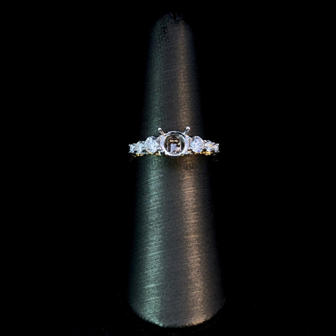 Enhance your collection with our alluring semi mount. Featuring .49ctw of sparkling round diamonds set in 14kt 2-tone gold, this exquisite design effortlessly combines classic elegance with modern style. Choose your perfect center stone from our selection to create a truly unique and eye-catching piece of jewelry. Price is for the semi mount only. Center stone will be added at an additional cost. This ring is a size 7. If that size is not a perfect fit, first time sizing is free at the time of purchase. Additional sizing fees may apply.