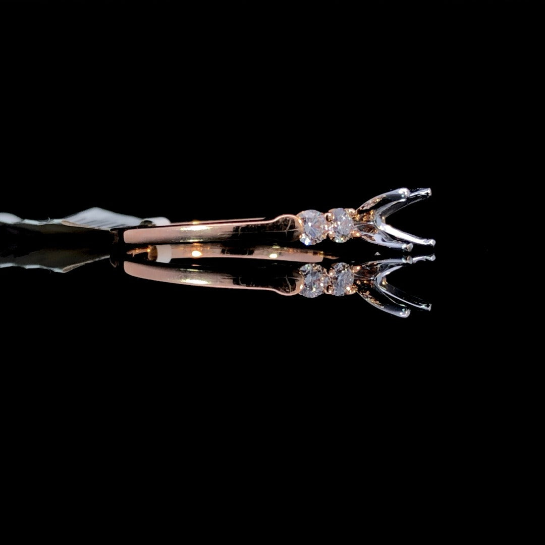 Create your dream ring with our classic diamond semi mount. Choose your perfect center stone from our unbeatable selection of loose diamonds for a personalized touch. This elegant ring features 4 round accent diamonds totaling .26ctw set in 14kt rose gold for a timeless and sophisticated look. Price is for the semi mount only. Center stone will be added at an additional cost. This ring is a size 6.5. If that size is not a perfect fit, first time sizing is free at the time of purchase. Additional sizing fees may apply.
