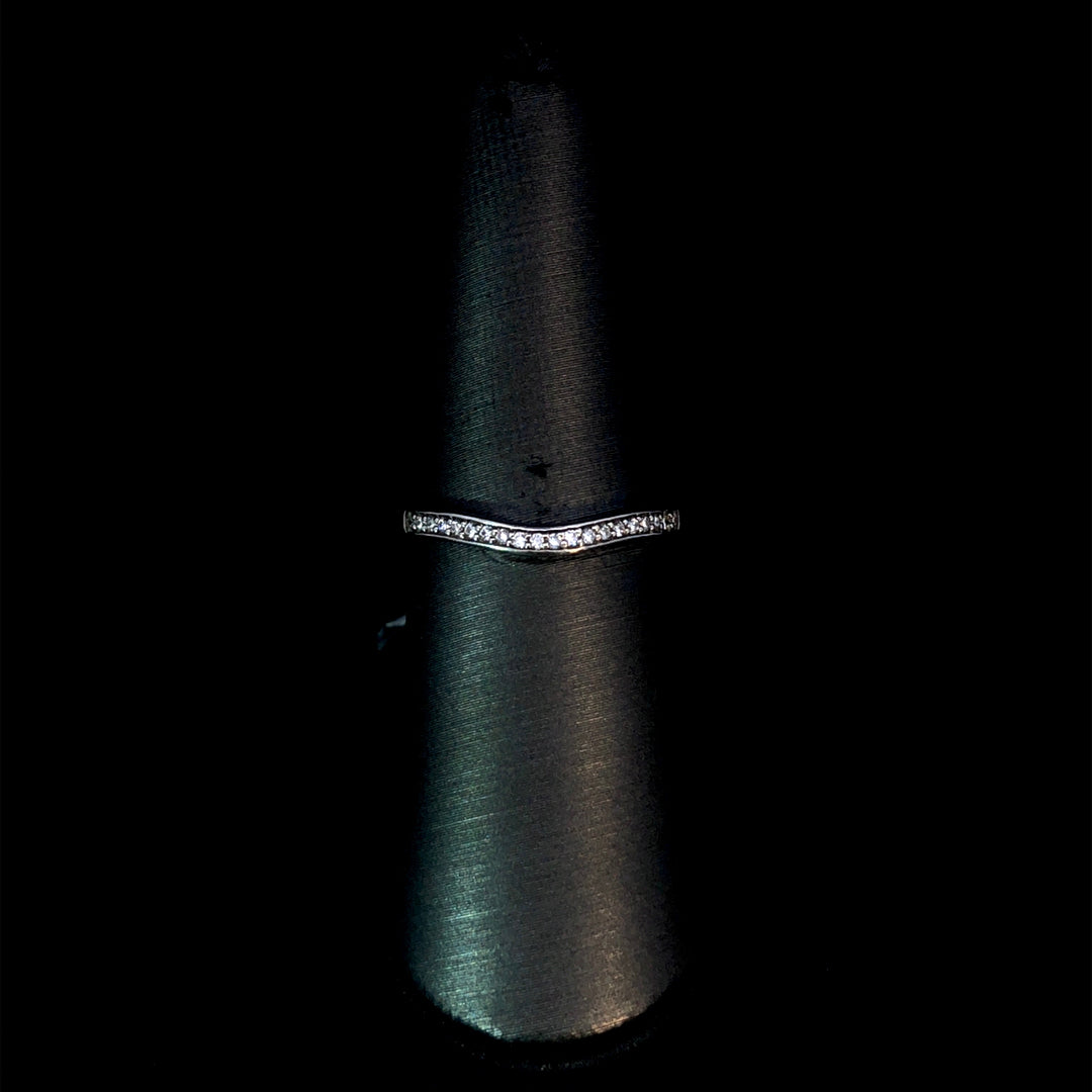 Add a touch of elegance to your jewelry collection with this curved diamond band. The 14kt white gold band is adorned with .10ctw of sparkling round diamonds, adding a touch of luxury to any outfit. This ring is a size 7. If that size is not a perfect fit, first time sizing is free at the time of purchase. Additional sizing fees may apply.
