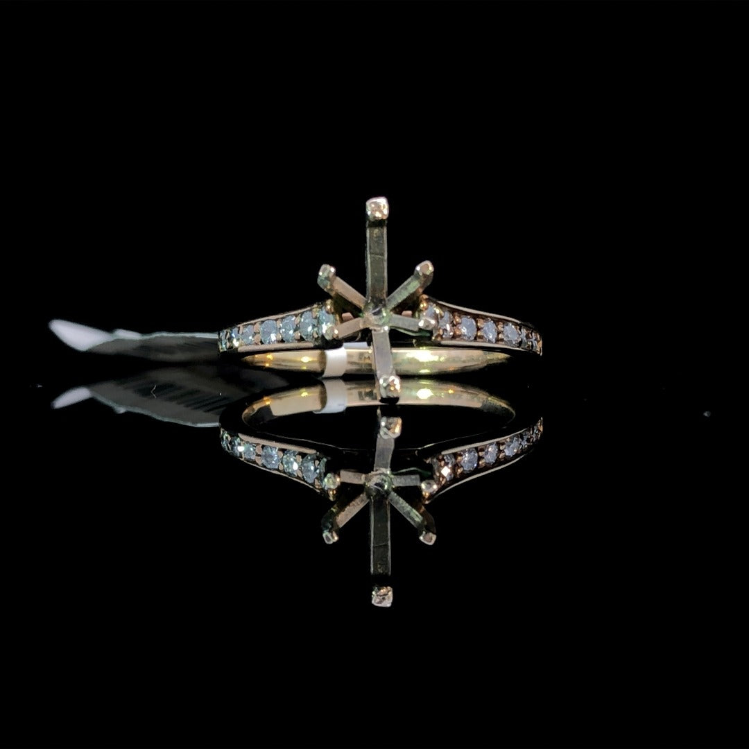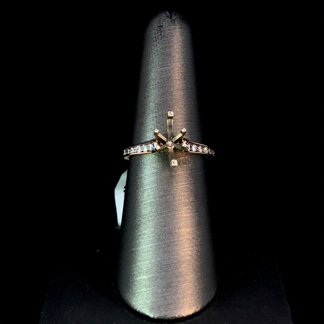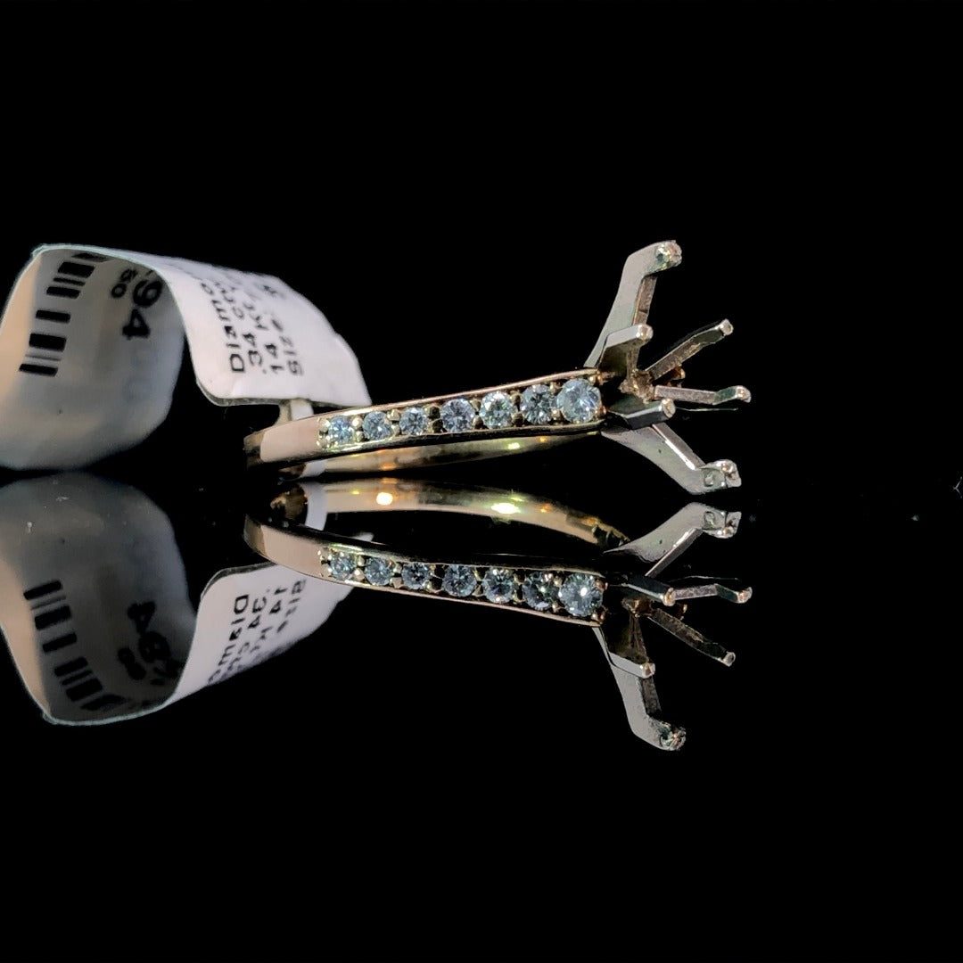 Indulge in luxury and elegance with our classic diamond semi mount. Embellished with .34ctw of round diamond accents and crafted in 14kt yellow gold, this timeless piece is the perfect canvas for your chosen center stone from our wide variety of loose stones. Elevate your style with this exquisite design. Price is for the semi mount only. Center stone will be added at an additional cost. This ring is a size 7. If that size is not a perfect fit, first time sizing is free at the time of purchase. Additional sizing fees may apply.