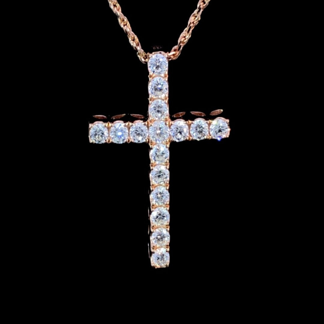This cross pendant is a timeless addition to your wardrobe. Crafted from 14K rose gold, it sparkles with diamond accents totaling 0.63 ct. Wear it with any look for an elegant finished touch. Chain is not included.