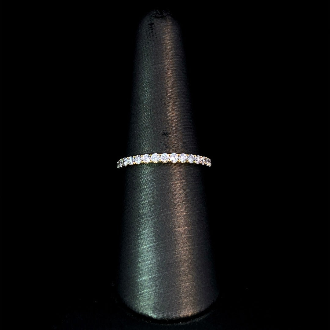 Indulge in timeless elegance with our classic diamond band. Crafted with .38ctw of sparkling round diamonds, set in luxurious 14kt yellow gold. Elevate your style with this classic and sophisticated piece of art. This ring is a size 7. If that size is not a perfect fit, first time sizing is free at the time of purchase. Additional sizing fees may apply.