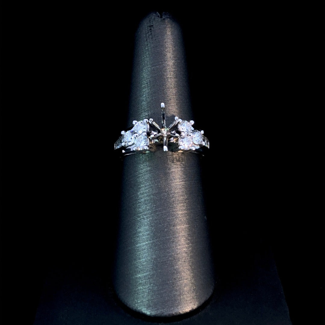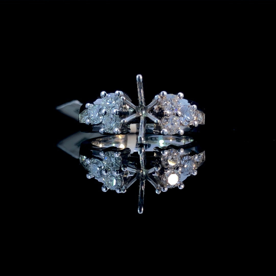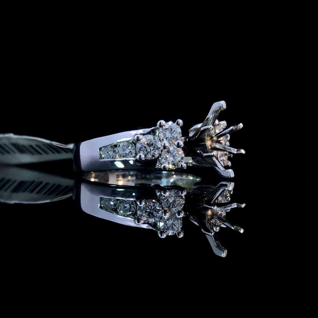 Elevate your style with our 14kt white gold semi mount, featuring 1.00ctw of sparkling round diamonds. Customize it with your choice of center stone from our extensive collection. This timeless semi mount exudes elegance and sophistication, making it a perfect addition to your jewelry collection. Price is for the semi mount only. Center stone will be added at an additional cost. This ring is a size 7. If that size is not a perfect fit, first time sizing is free at the time of purchase. Additional sizing fees may apply.