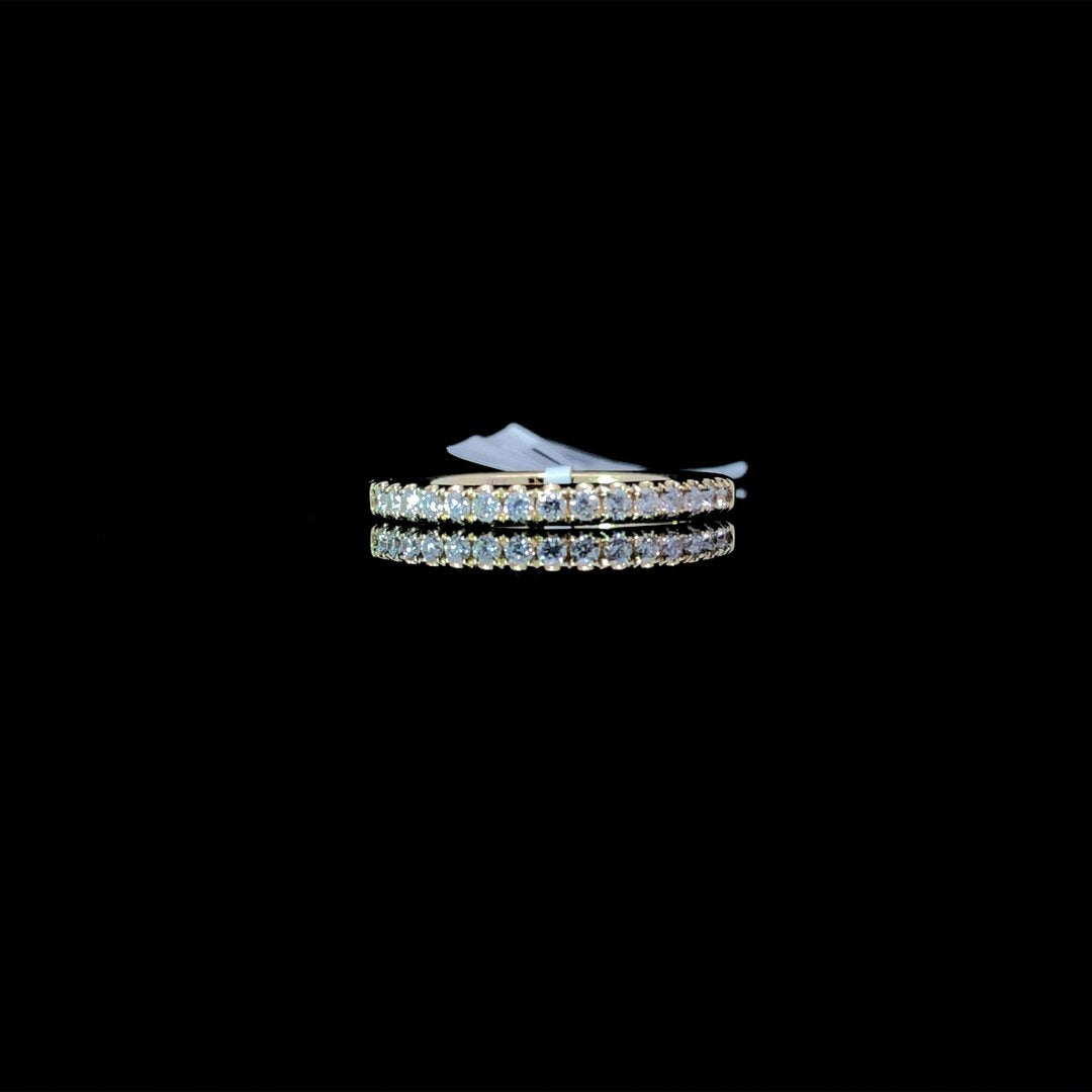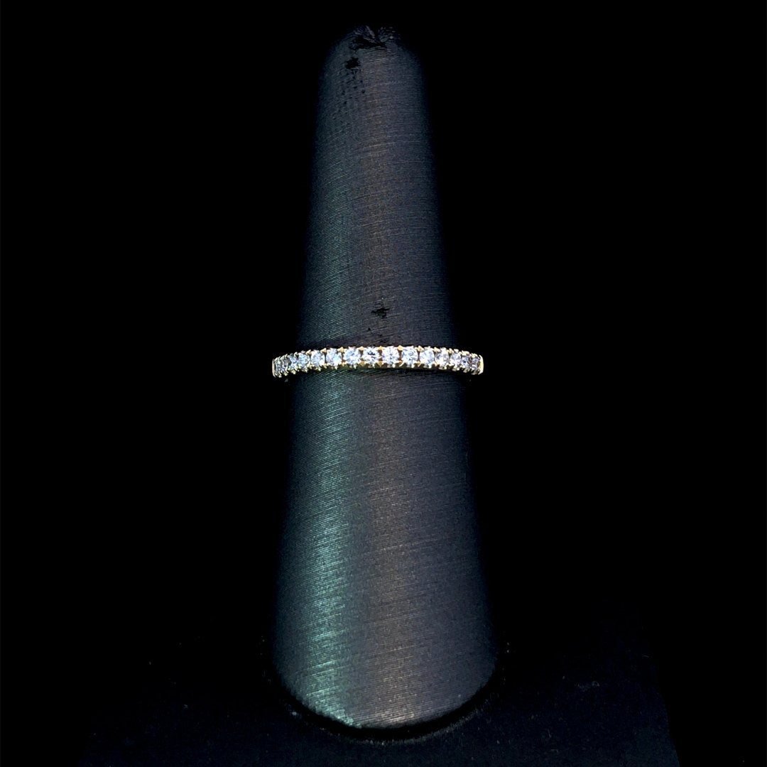 Upgrade your everyday look with this classic diamond band. Featuring a timeless design of .25ctw round diamonds set in 14kt yellow gold, this band adds a touch of elegance to any outfit. Treat yourself or a loved one to this versatile and stunning piece. This ring is a size 7. If that size is not a perfect fit, first time sizing is free at the time of purchase. Additional sizing fees may apply.