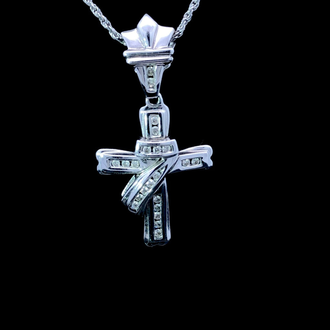 This stunning cross pendant features .23ctw of diamonds artfully channel set in 14kt white gold. Each diamond is impeccably cut, creating a breathtaking piece that'll last for generations. Show off your faith with this elegant and timeless pendant. Chain is not included.