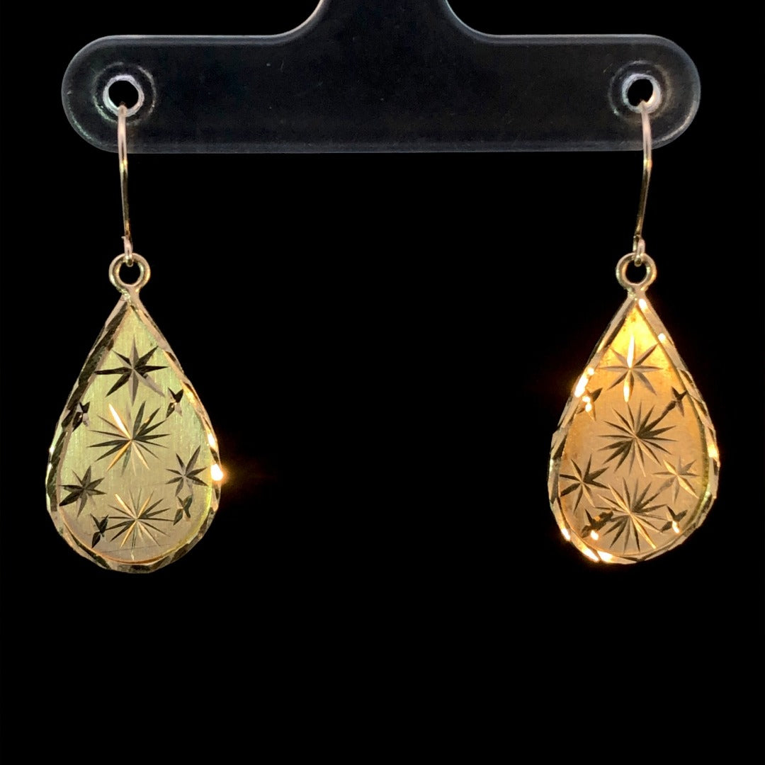These tasteful 14kt yellow gold dangle earrings boast an intricate detailing that is both eye-catching and elegant. Their lightweight design makes them perfect for all-day wear, as well as for a touch of subtle sophistication for special occasions.