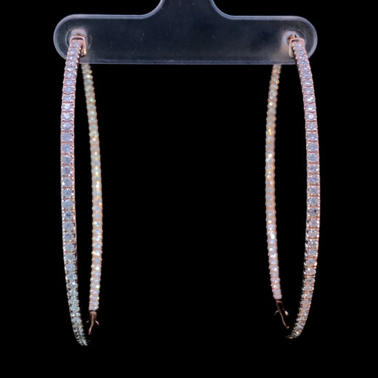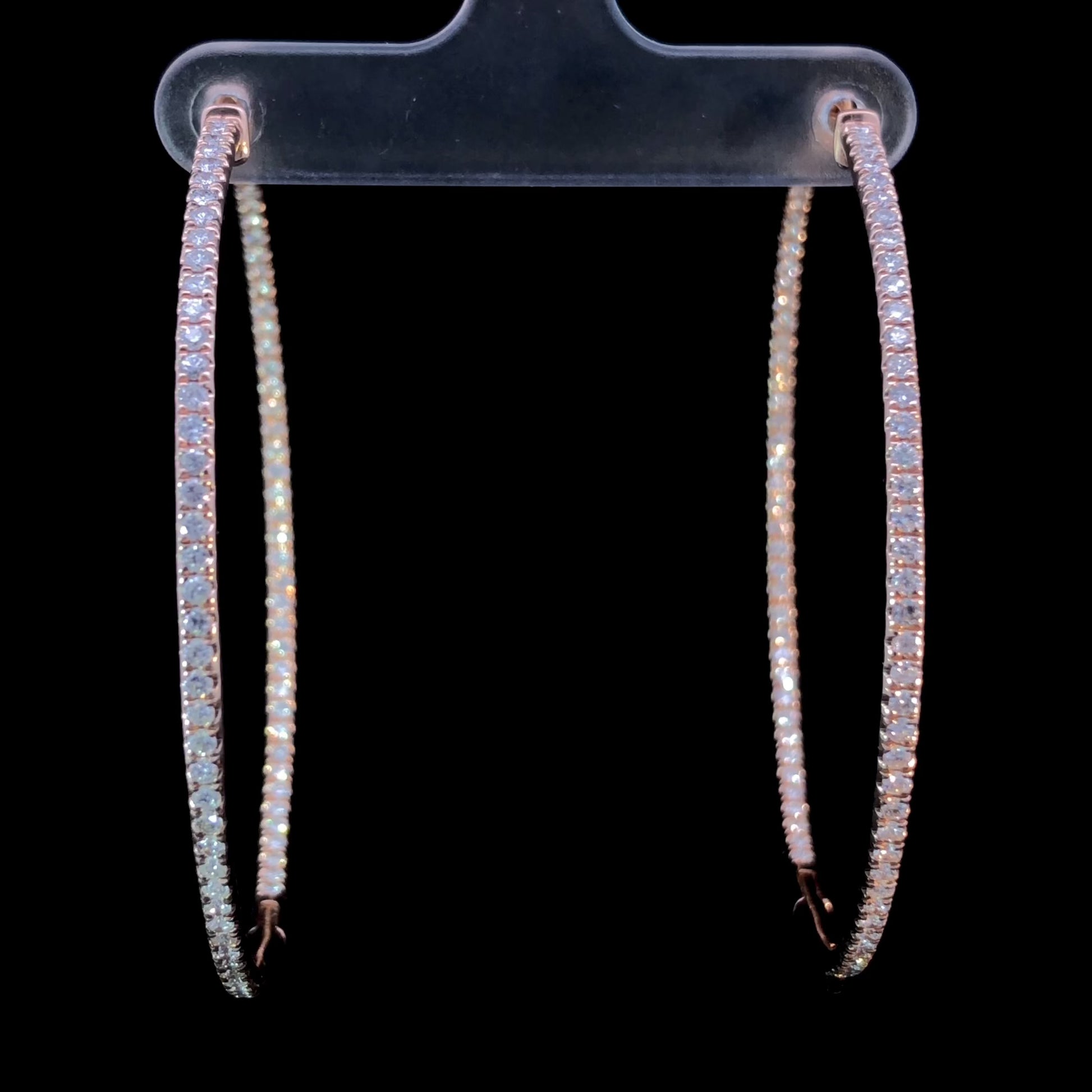 Dazzling and luxurious, these statement hoop earrings showcase an intricate setting of round diamonds totaling 1.90ctw, all encased in luxurious 14kt rose gold. Make a glamorous statement and draw envious stares with these breathtaking earrings!